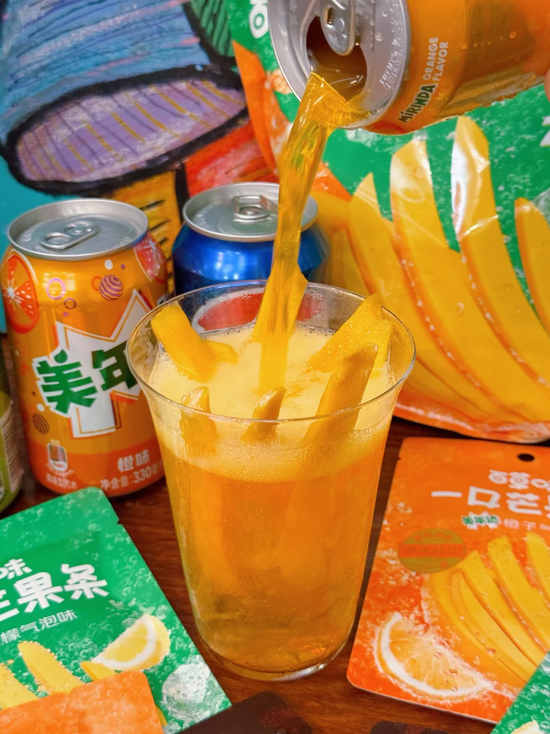 ✨美年达 ·橙子气泡味芒果条 入口是Q弹的口感加上浓浓的芒果香居然还有浓浓的橙味,就像在生嚼美年达一样,这样搭配既清新又和谐!