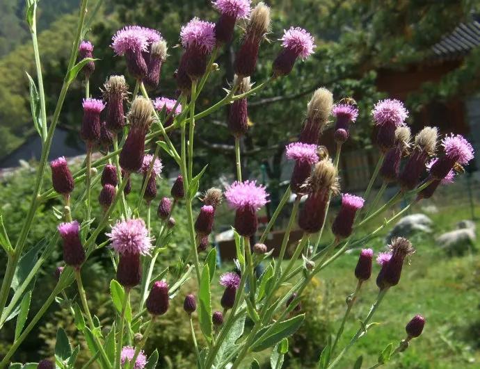 每天认识一种植物20:小蓟ji 别名: 山萝卜(广州、佛山、湛江、惠阳、潮安)、老虎脷(海南)、山老鼠簕、猫枝簕(广州)、猫仔刺头(潮阳)、牛枝簕(翁源)、牛参(潮安、罗定、化州)。 植物形态: 直立粗壮草本。叶抱茎,矩圆形长15-20厘米,上部的较短,羽状深裂,裂片和裂齿有针状利刺,两面均散生膜质的疏毛。头状花序大,单生,淡紫红色。瘦果。 生长环境: 生于山坡、路旁,广东各地均有分布。 采集加工: 药用根。夏秋采集,晒千备用,或全草鲜用。 性味功能: 苦凉。凉血止血,解毒消肿。用途用量:吐血,衄血,尿血,创伤出血,跌打瘀肿,阑尾炎,痈疮肿毒。内服鲜用1一2两,干用5钱一1两。外用鲜根或全草适量。 44