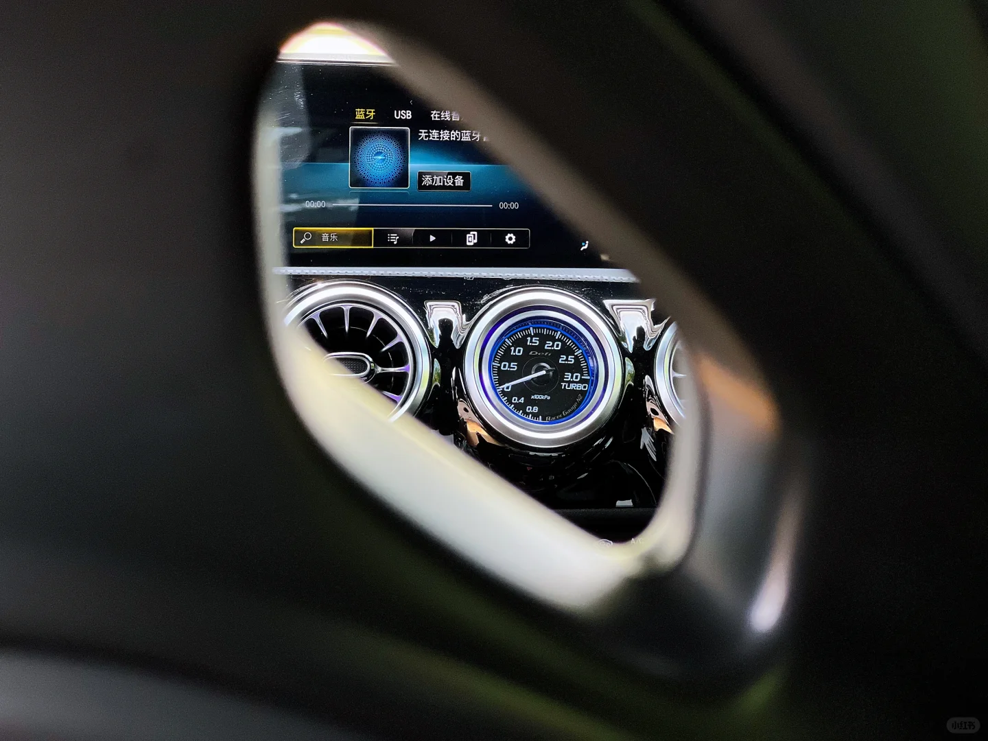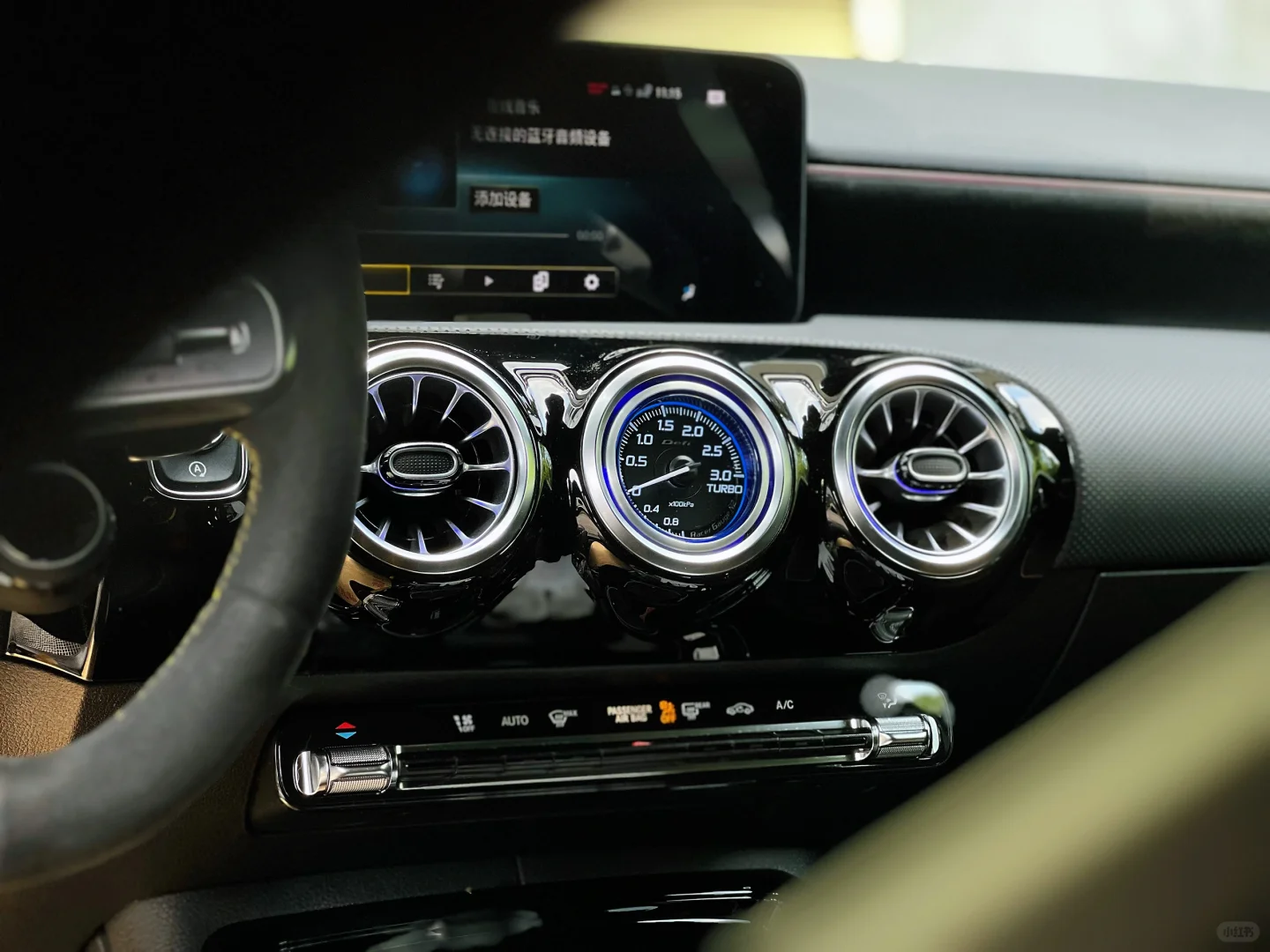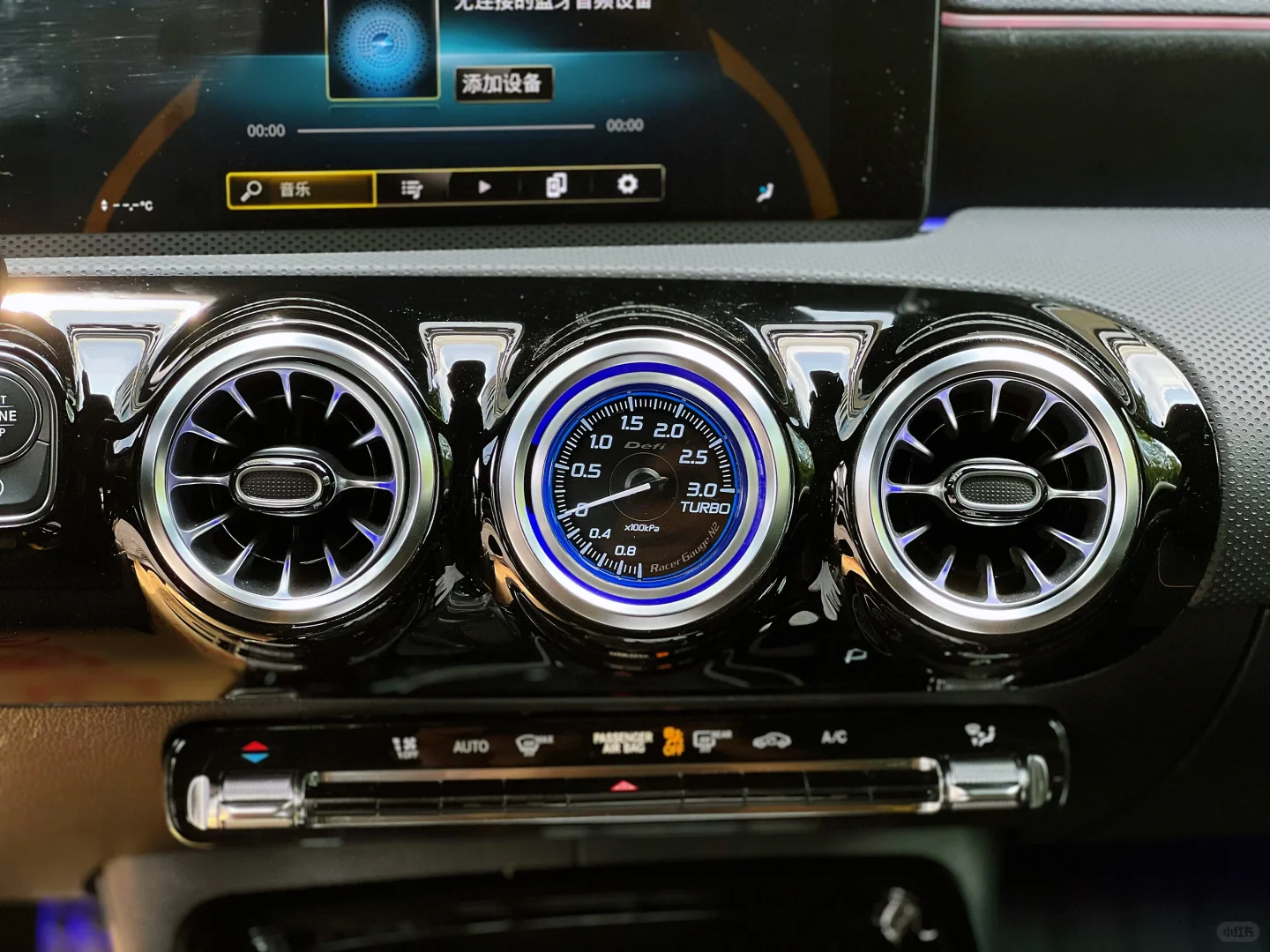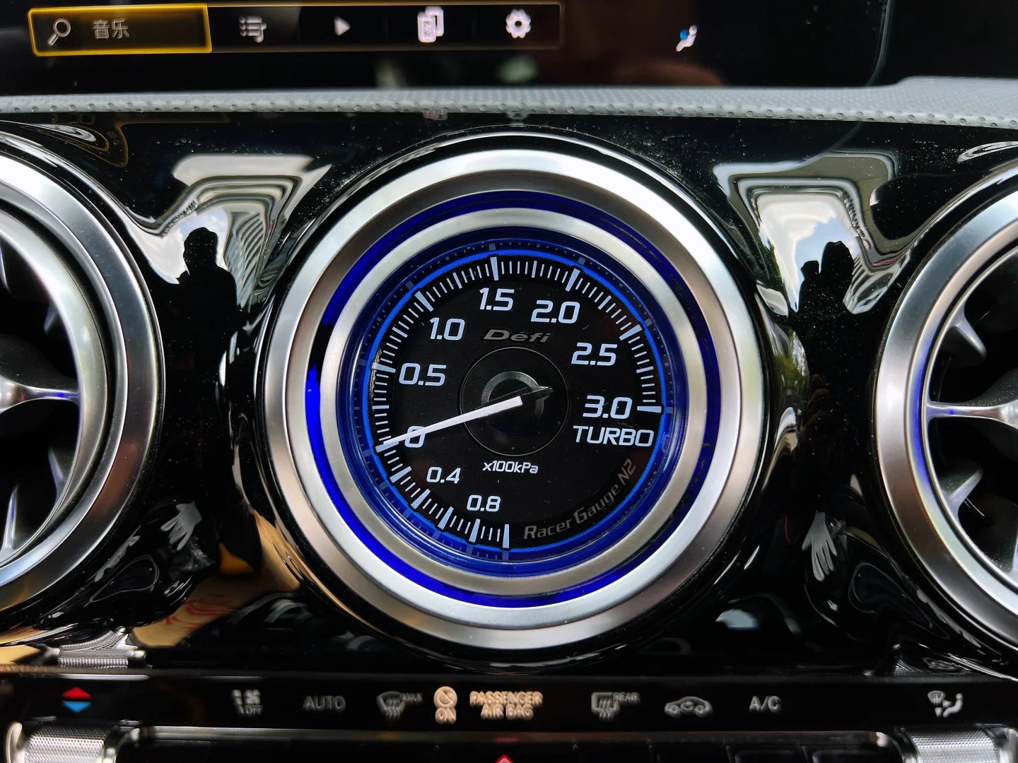 奔驰A45 AMG: Defi 3Bar涡轮表, 融入出风口原汁原味, 我们对改装升级的要求, 要像出厂自带一般完整。
