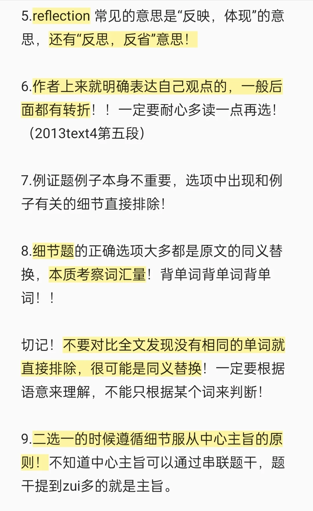 8.细节题的正确选项大多都是原文的同义替换,本质考察词汇量!背单词背单词背单词!!