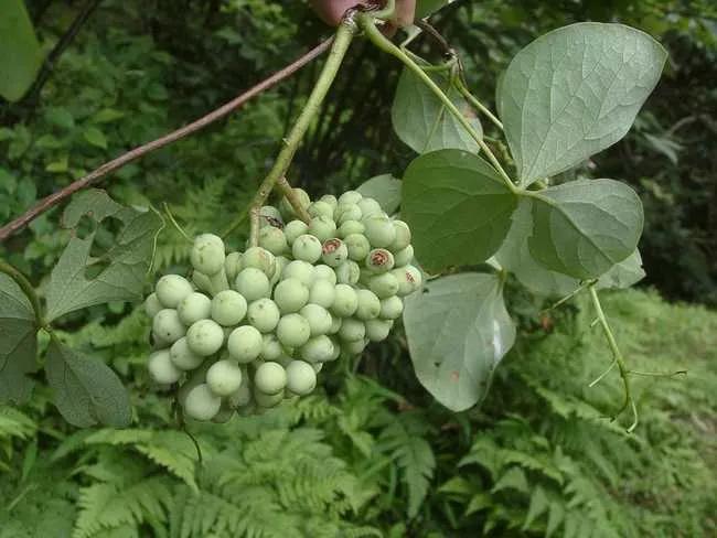 大血藤 别名: 大活血(广州)、血风藤(韶关)。植物形态:落叶攀援灌木,长达10米。茎褐色,圆形,光滑无毛。叶互生,三出复叶,叶柄上有槽,基部圆形。两侧子叶较中间者大,斜卵形,无柄,顶端尖,基部两边不对称,外边较内边为大。花腋生,总状花序,单性,多数,有香气,黄色,浆果。 生长环境: 生于大山林丛中,常攀援于其他植物上。 采集加工: 药用藤。夏秋季采集,洗净,切片晒干备用。 性味功能: 若平。祛风湿,强筋骨,活血,通经。 用途用量: 贫血,风湿性关节炎,手足麻木拘挛。内服干用5钱一1两。 52