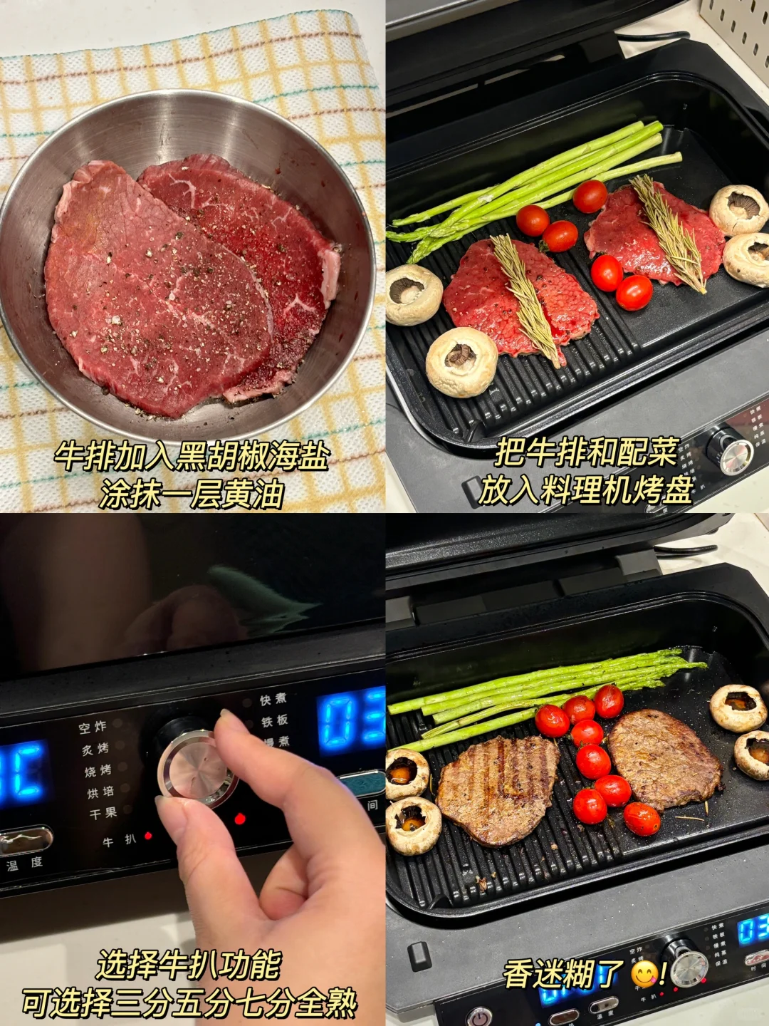 它的专业牛扒模式有四档熟度选择