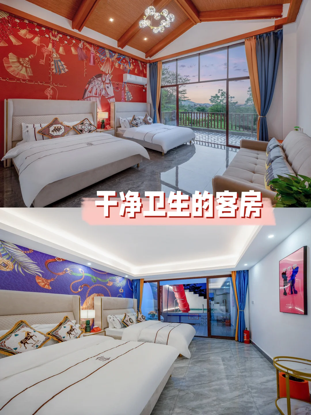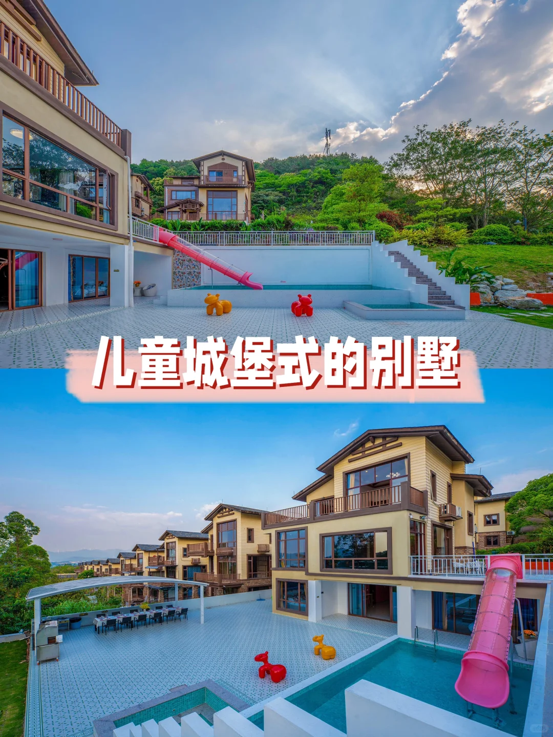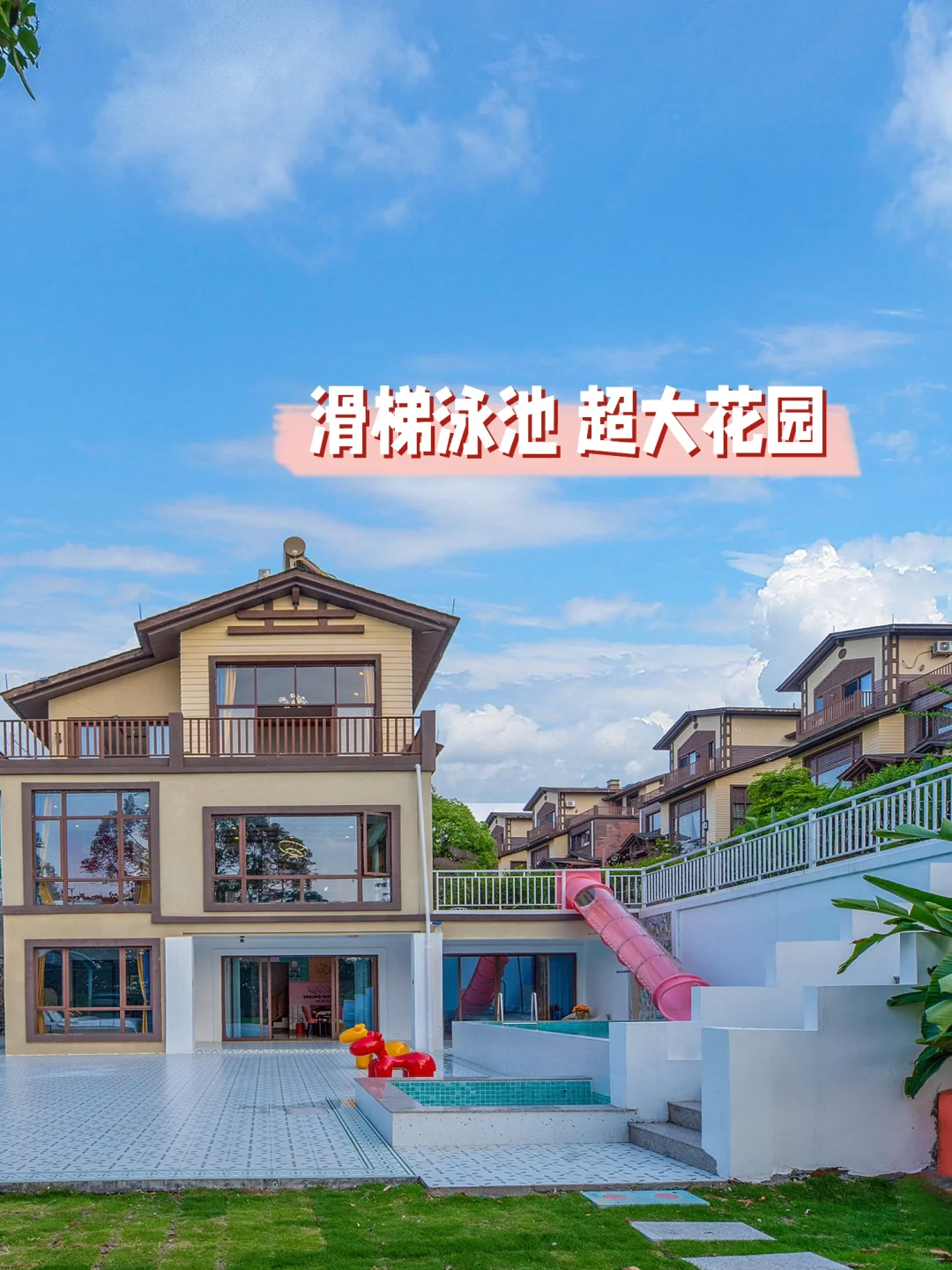 院子配置有滑梯泳池🏊🏻♂️暑假玩水拒绝人挤人的沙滩🏖️泳池旁还配置有温泉泡池♨️广州周边开车一个半小时左右即可达,周末遛娃选择这个别墅真的很合适![斜眼R]