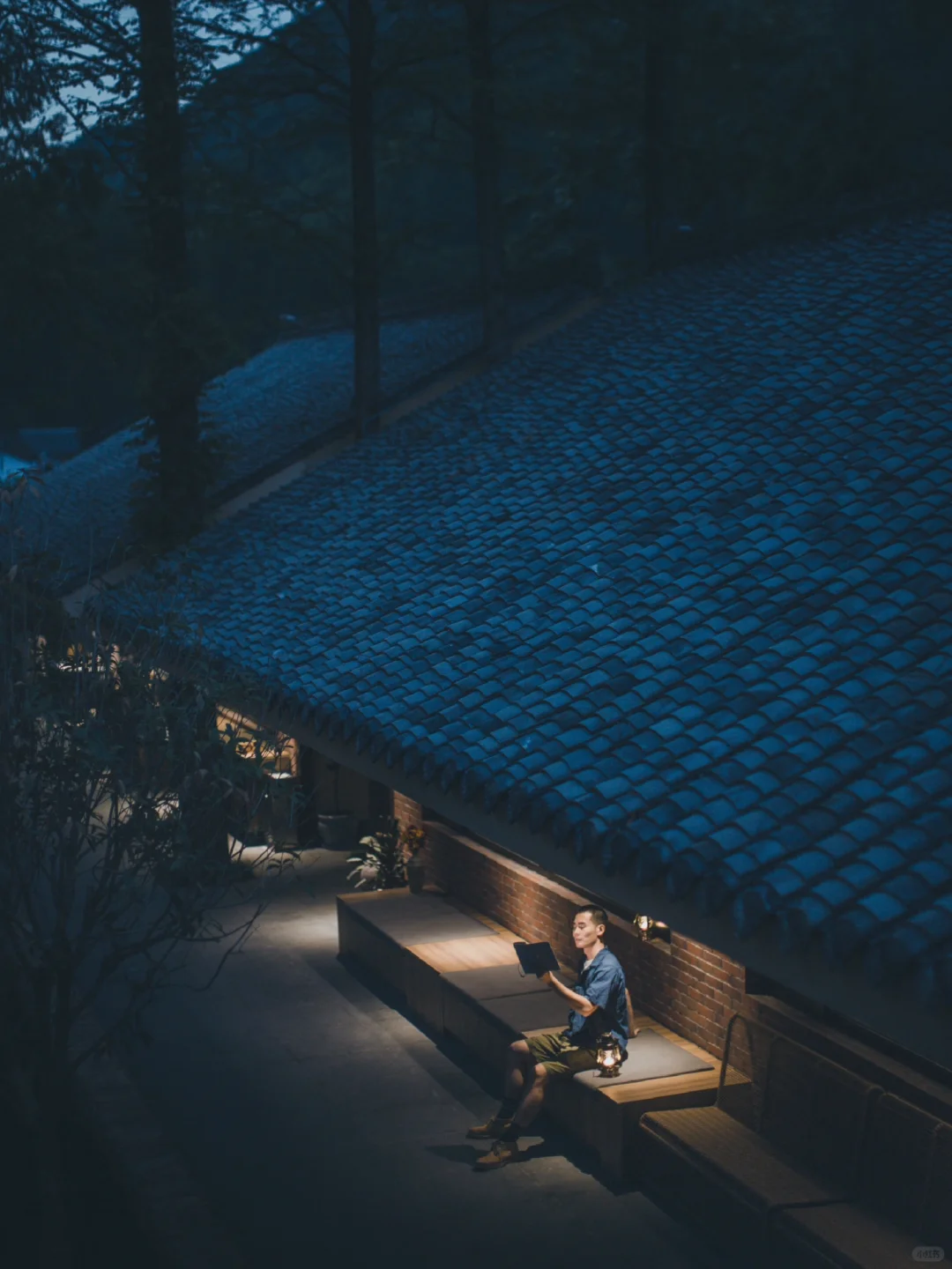 青瓦屋檐灯盏昏黄