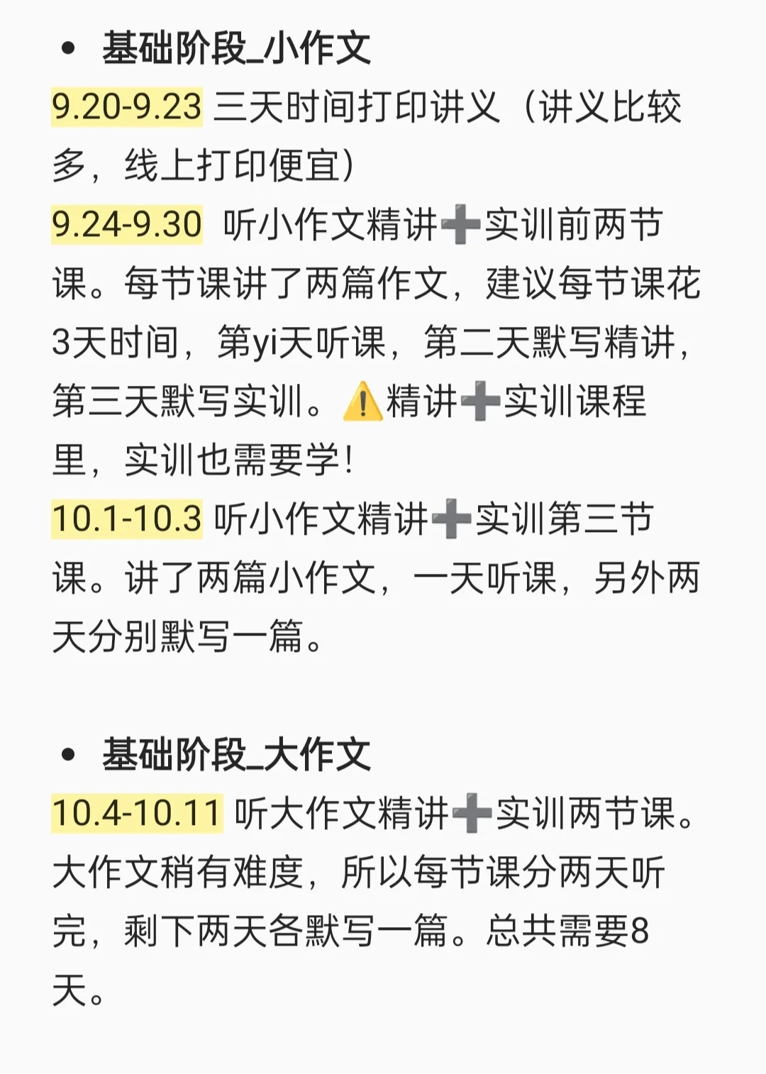 💛10.4-10.11 听大作文精讲➕实训两节课。