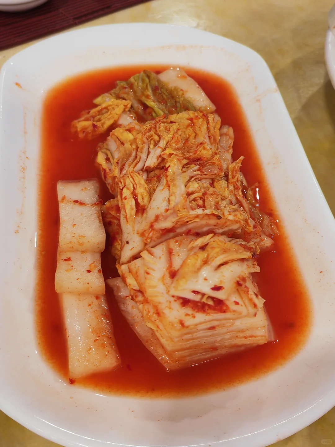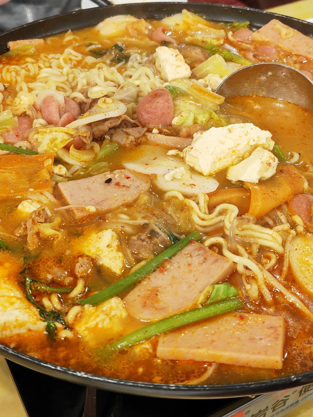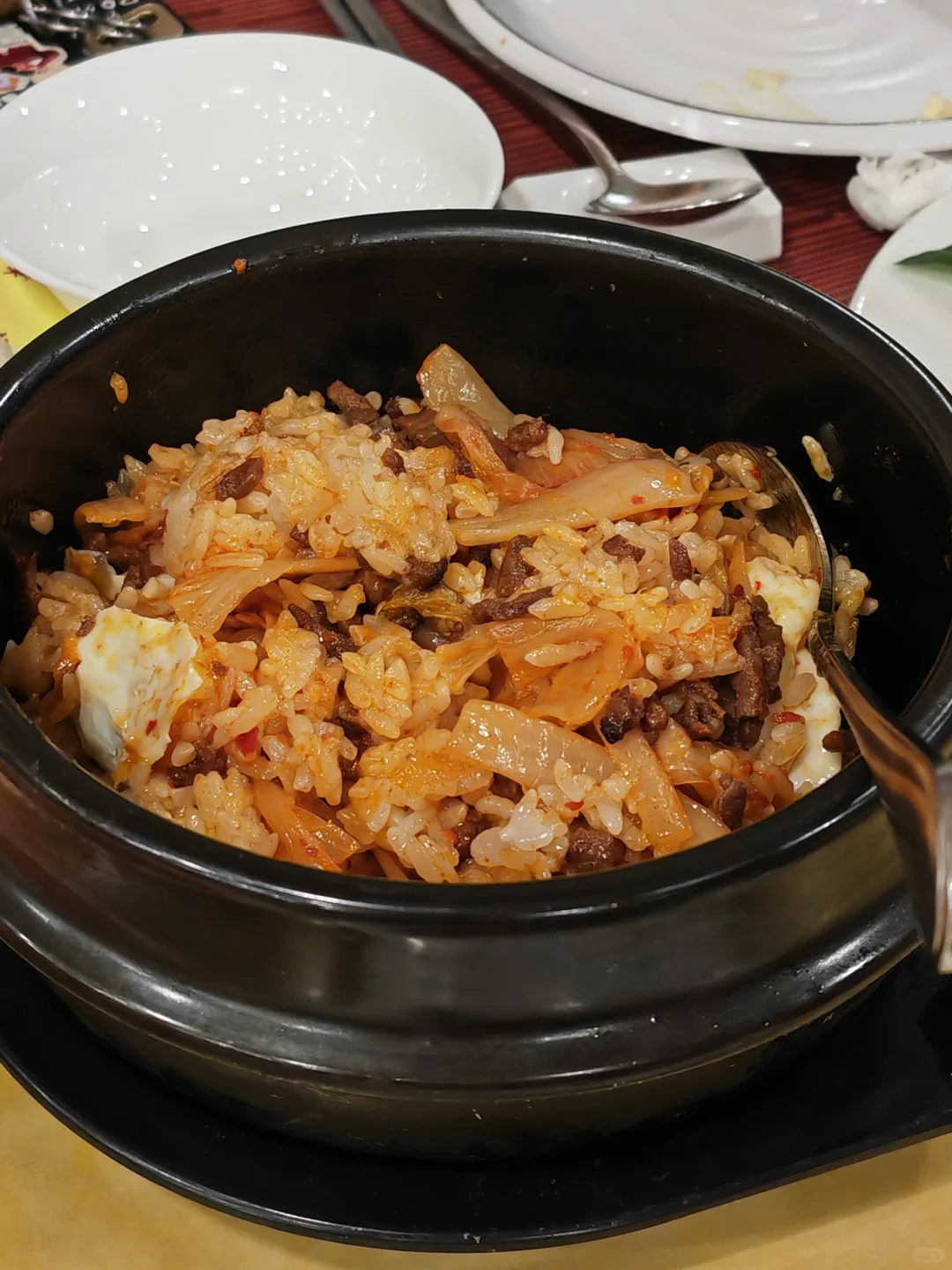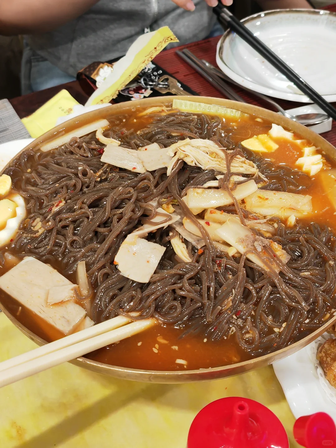 部队锅:朝鲜菜整体的味道非常的清淡,建议多点一份泡菜,可以把泡菜汤汁倒到部队锅里,部队锅量还是很大的,我们六个人吃还剩了很多。