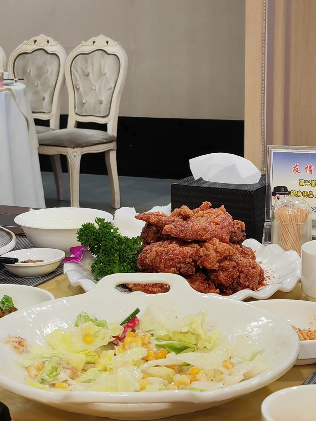 鸡肉蔬菜沙拉:整体的味道有点肯德基,但是量是非常大的,很好吃,夏天吃也非常的开胃。