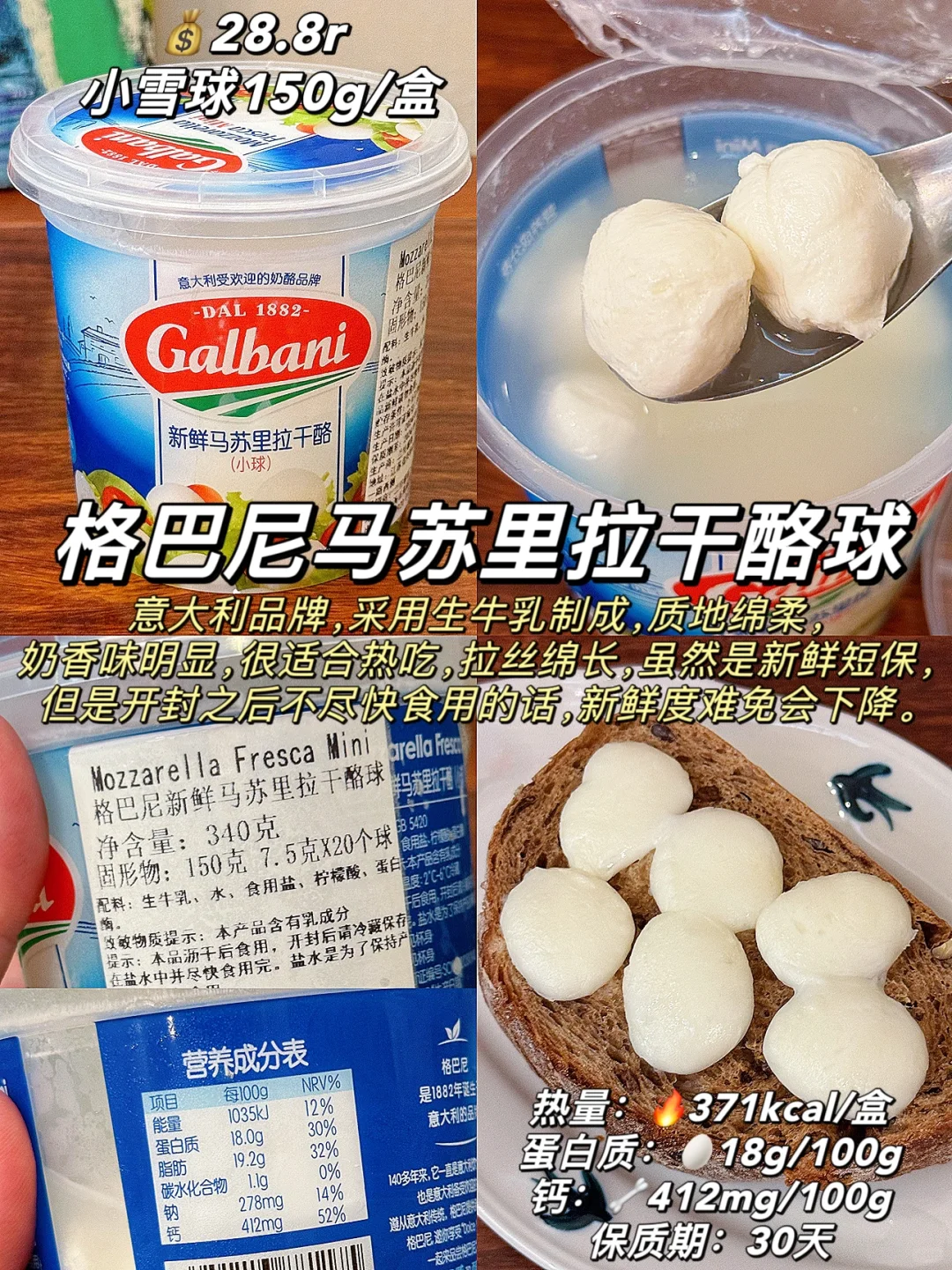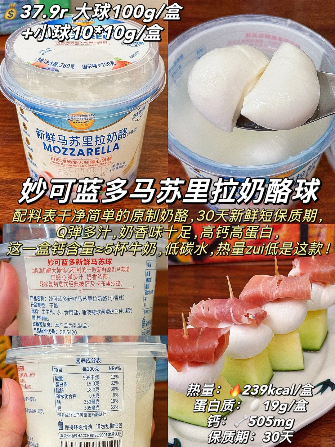 这两个刚好有一个组合装链接,所以一大一小我就都买回来了,开盖即可食用,像我平时都把这个小球当零食吃!配料表干净简单,就是新鲜原奶制成的原制奶酪,高钙高蛋白,30天新鲜短保质期,整个奶酪球很Q弹多汁,奶香味十足,高钙高蛋白,这一盒钙含量约等于5杯牛奶,还是低碳水,一盒碳水和一只基围虾差不多,实现低负担,热量zui低是这款,更适合管理期的姐妹们!