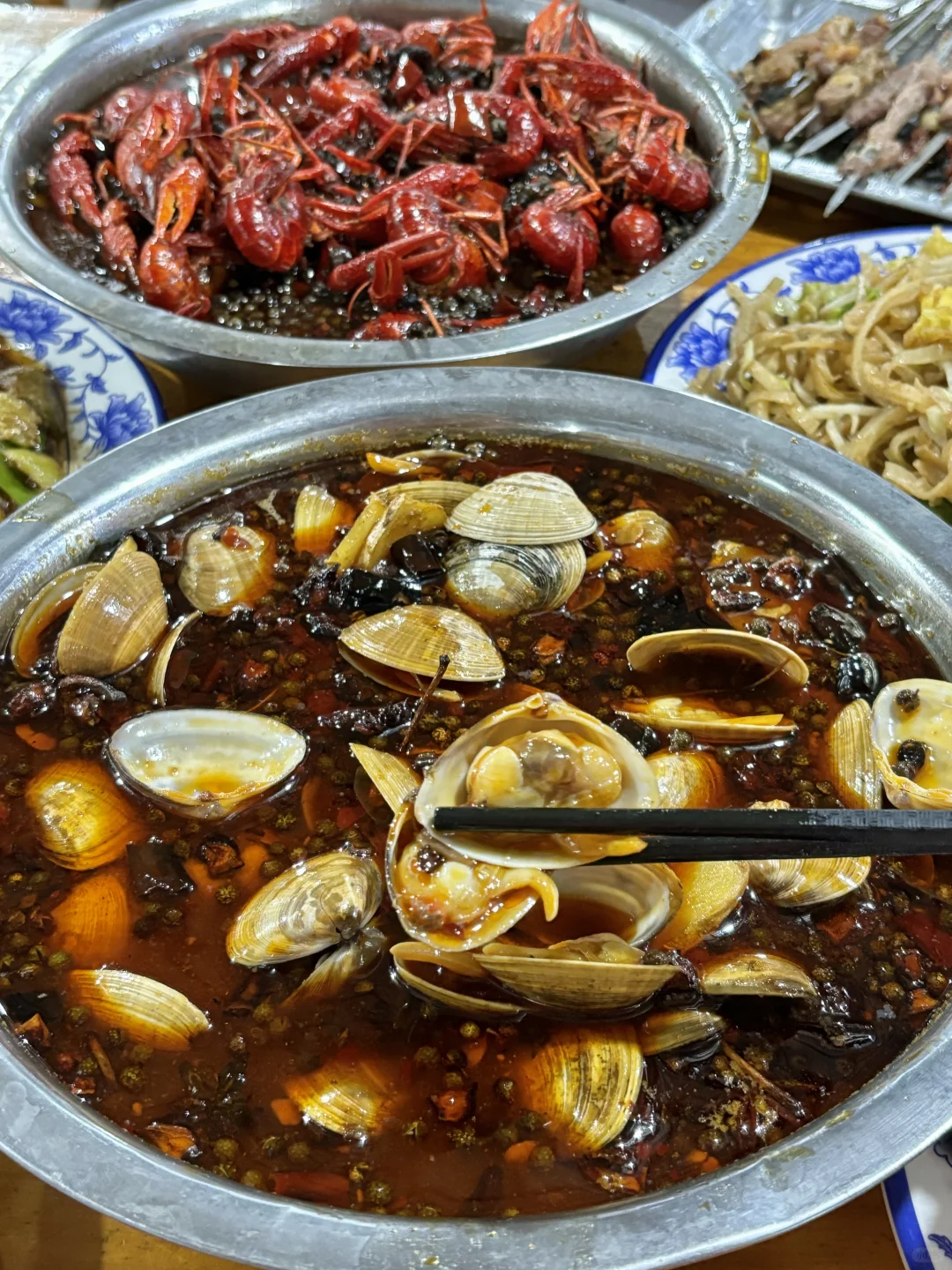 条条小路都好吃 平平无奇的,就这样开了28年的舜玉小区里面的老馆子。主打一个好吃实惠 炒菜份量很大!干煸豆角,豆角很劲道, 咸香带着辣。地三鲜拌米饭吃最下饭啦。 肥蛤麻辣的,蛤肉很饱满。烧烤主推白条,五花肉,羊肉串。个头真不小啊。对了,烤面包忘了拍照! 必点!!!真的松软焦嫩!连吃好几串!!