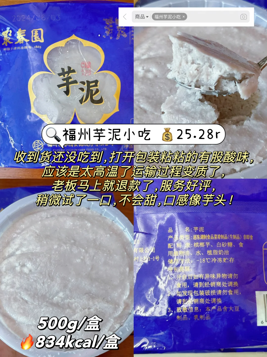 收到货还没吃到,打开包装粘粘的有股酸味,应该是太高温了运输过程变质了,老板马上就退款了,服务好评,稍微试了一口,不会甜,口感像芋头!