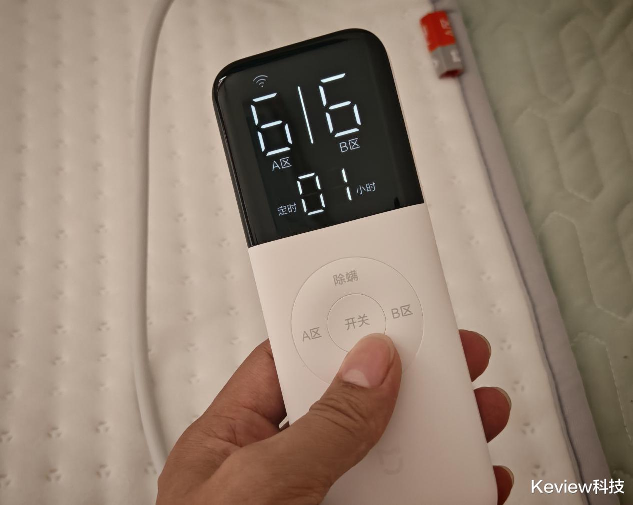 除了智能控制,电热毯设有控制按键,可进行除螨、定时、分区控制等操作,开关按键设计在了中部位置,方便盲操作。
