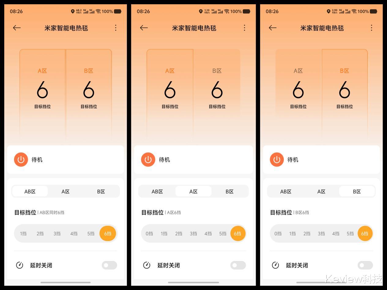 区别于传统电热毯的一体式加热,米家智能电热毯采用了A、B双区独立线路、分区加热功能设计,满足了两个人一起睡的不同温度需求,有女朋友或者媳妇的人都知道,男女需求的温度不同,同一个温度下,总会有一个人感觉到冷或热,双区的独立加热设计和6档智能温控系统,足以解决这个问题,一个电热毯的双温控,能让我们更好的温柔入眠。