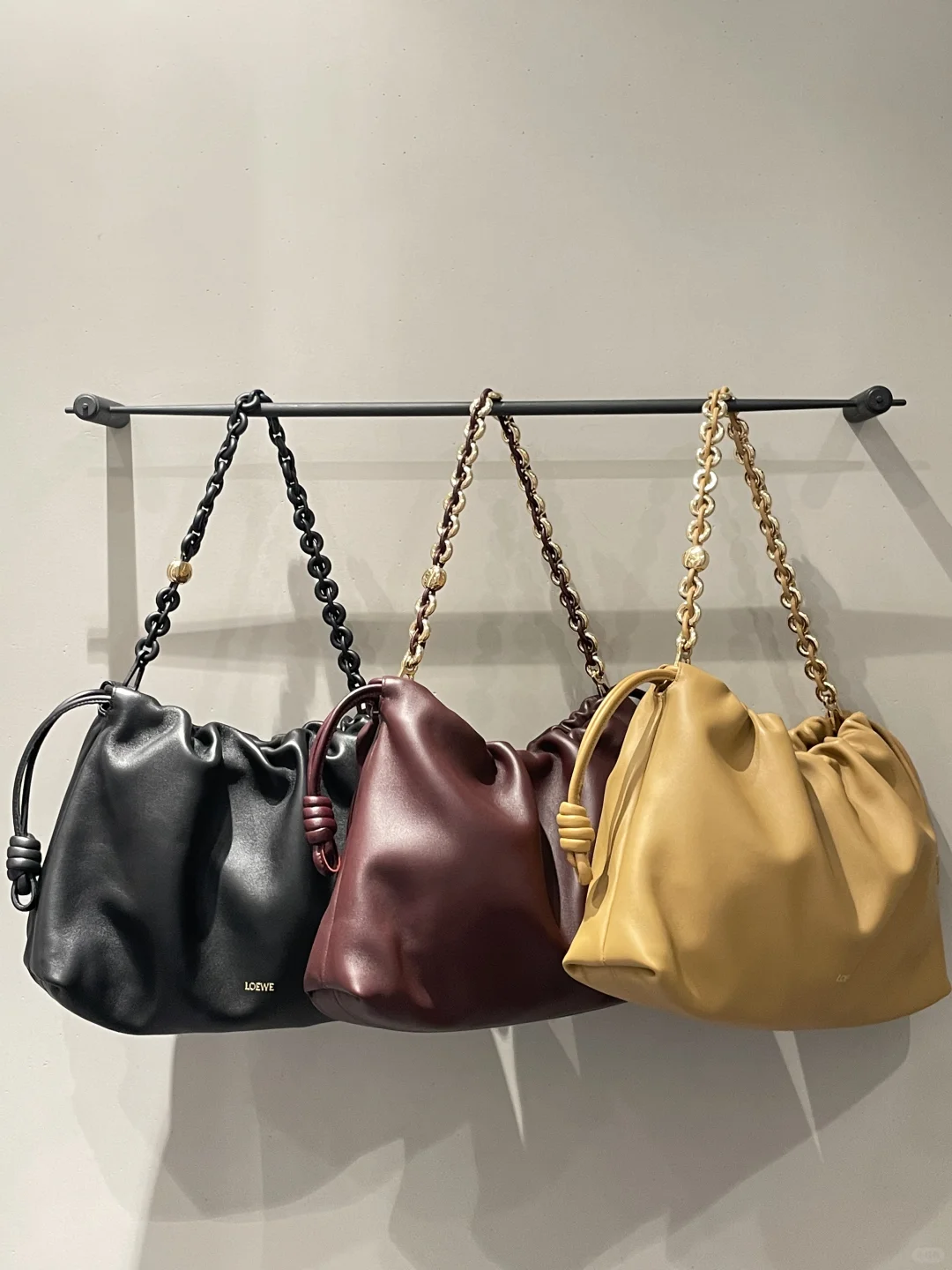 LOEWE罗意威 中性款包包 flamenco purse 大号 三色试背 可容纳14寸以下电脑,配有链条和皮质肩带 包身轻盈,皮质质感似黄油 大包流行回来了[暗中观察R]当然要get起来 男士推荐黑色⚫️ 和all black风格搭配起来,简直是酷GG登场[派对R]