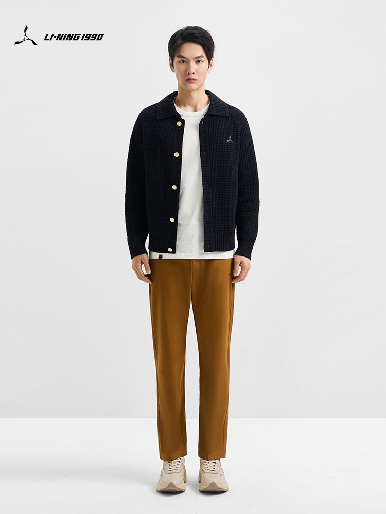 全棉斜纹面料先染纱后织造挺括有质感,常规直筒裤型脚口轻微锥形; 后腰头设置两档不同维度的纽扣位置,可以根据不同腰围进行调节;