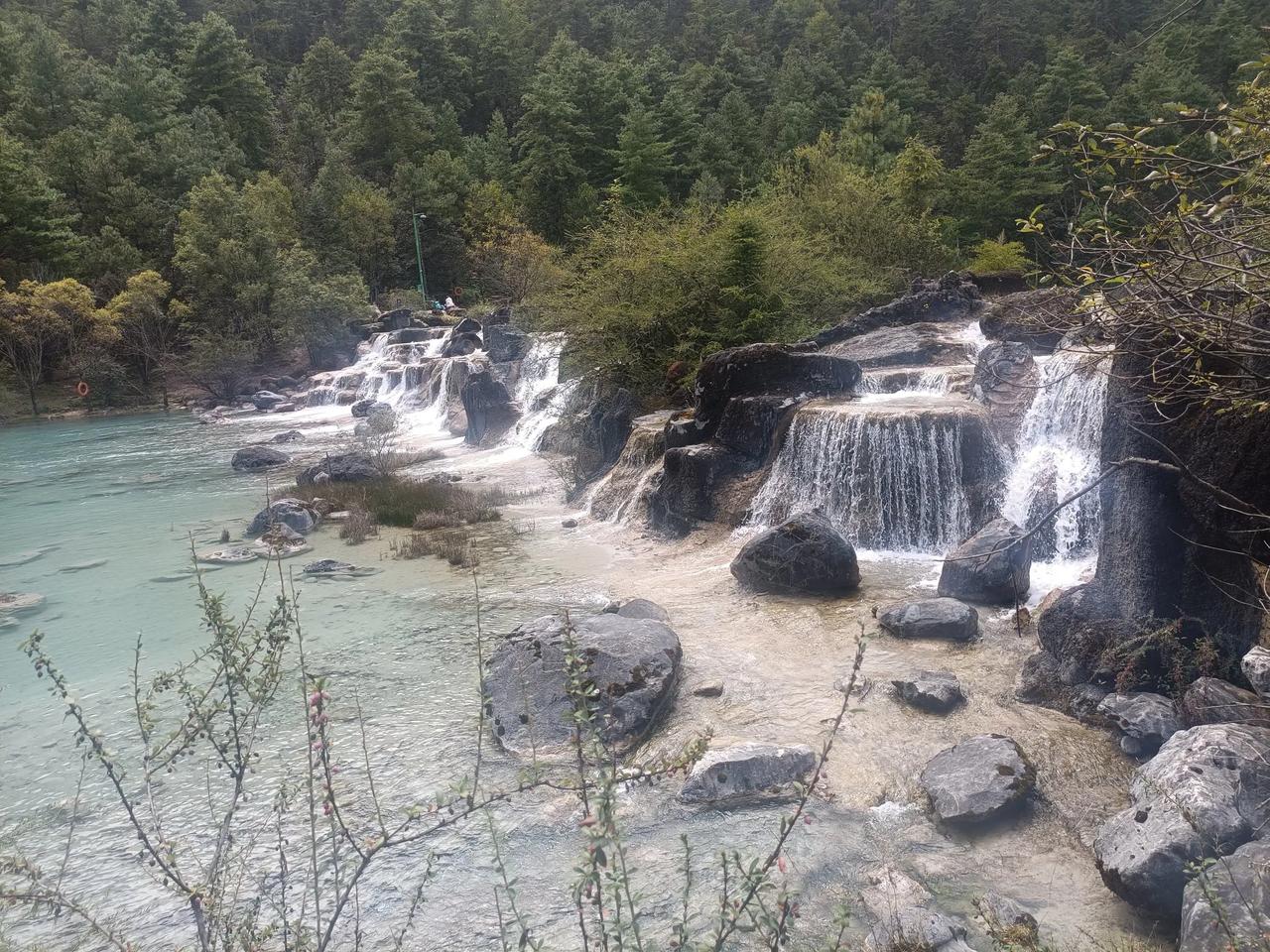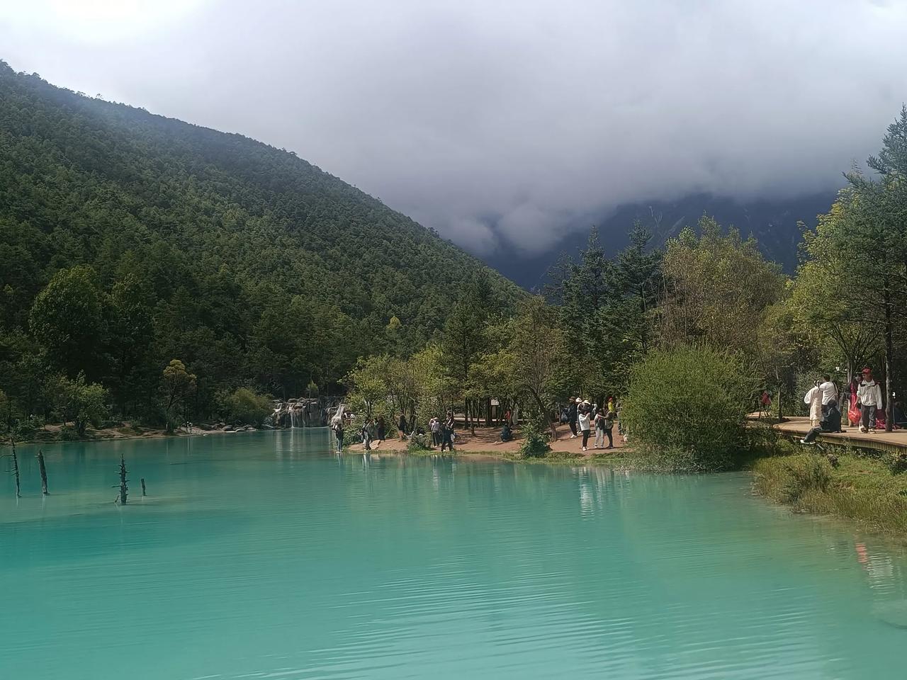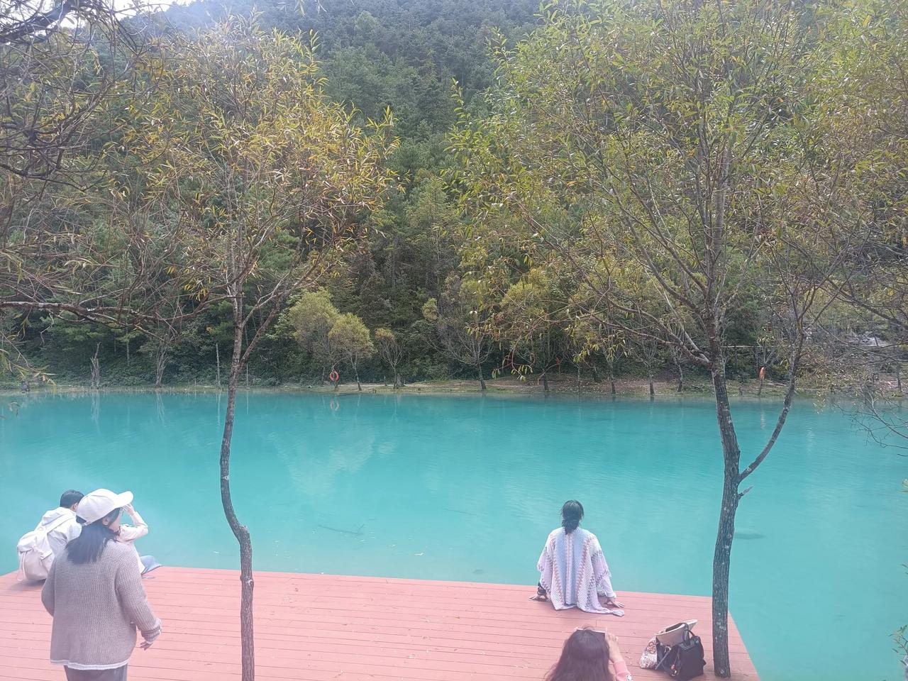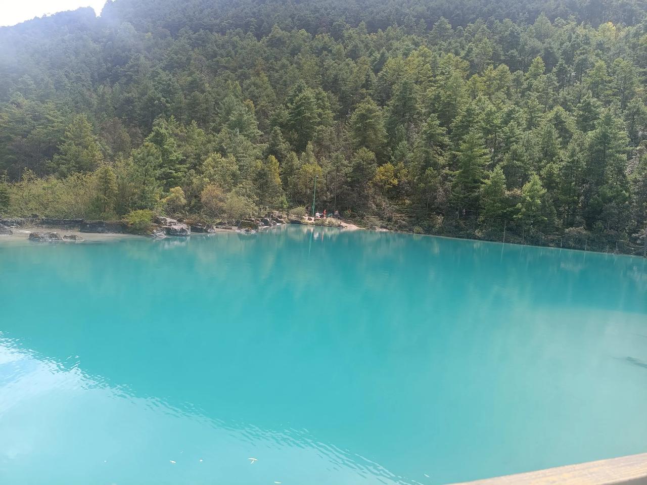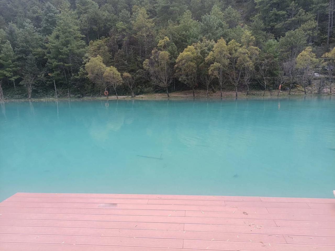 碧蓝湖水映青山,竹影婆娑入画屏。