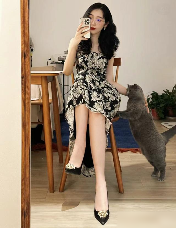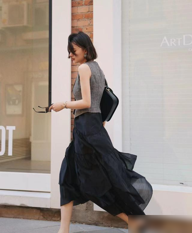 选百褶裙有两个关键:一是选细褶不选宽褶——细褶更显瘦,深色系(如黑色、深灰)比浅色系更藏肉;二是选长度及膝或过膝——太短显轻浮,太长压身高,及膝长度刚好露出纤细小腿,配双乐福鞋或坡跟凉鞋,走路时裙摆摇曳,像撑开的小扇面,轻盈又灵动。