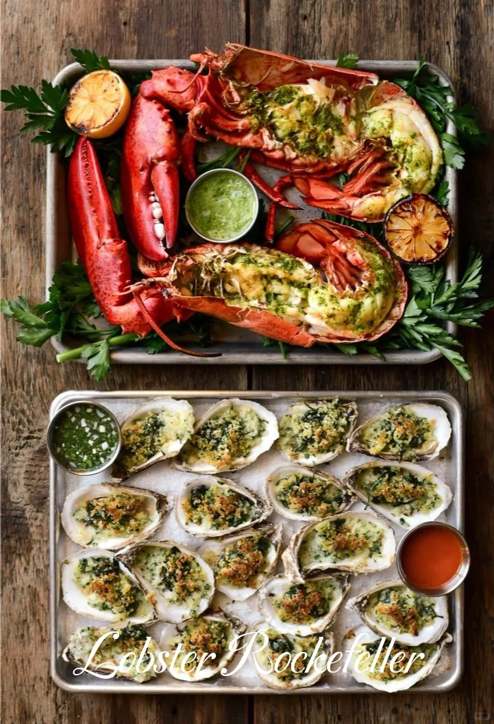 7️⃣在每个龙虾上撒上几撮两种奶酪。再上撒上面包屑混合物。烘烤 10 至 12 分钟。使奶酪和面包屑变褐色。用柠檬皮和剩余的脆培根装饰。搭配柠檬角食用🍽️