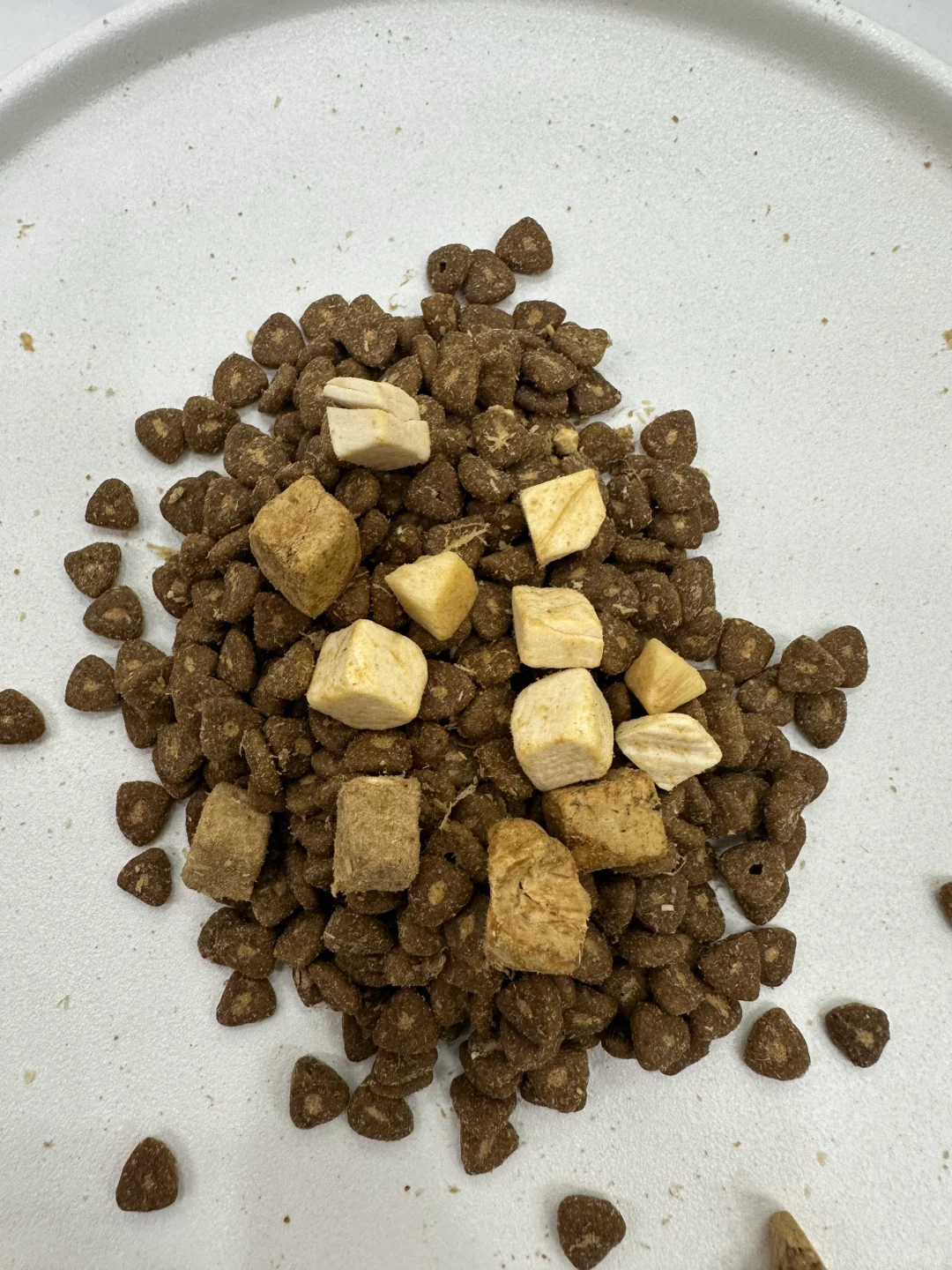 ee们,你们都给家里毛孩子夏天喂的什么粮?发现狗狗夏天胃口特别差,不知道是不是因为高温的影响,所以换了一款专门夏天吃的狗粮,希望能好好的多吃点长长肉。这个狗粮长的和小粽子似的,而且还是夹心带鸡肉椰蓉馅儿的,这个冻干真的超级多,鸡肉比较低敏,椰子里的粗纤维,对狗子特别友好,开袋试吃了一回,直接光盘行动了,今天又一下子屯货好几包。
