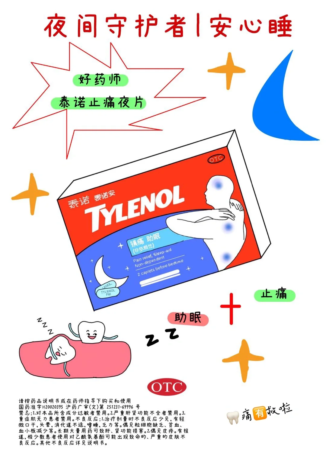 🦷痛姐妹们,🈶泰诺止痛夜片,晚上能够安睡入眠啦,休息好疼痛缓解。元气又精神,又能继续搬砖🧱啦
