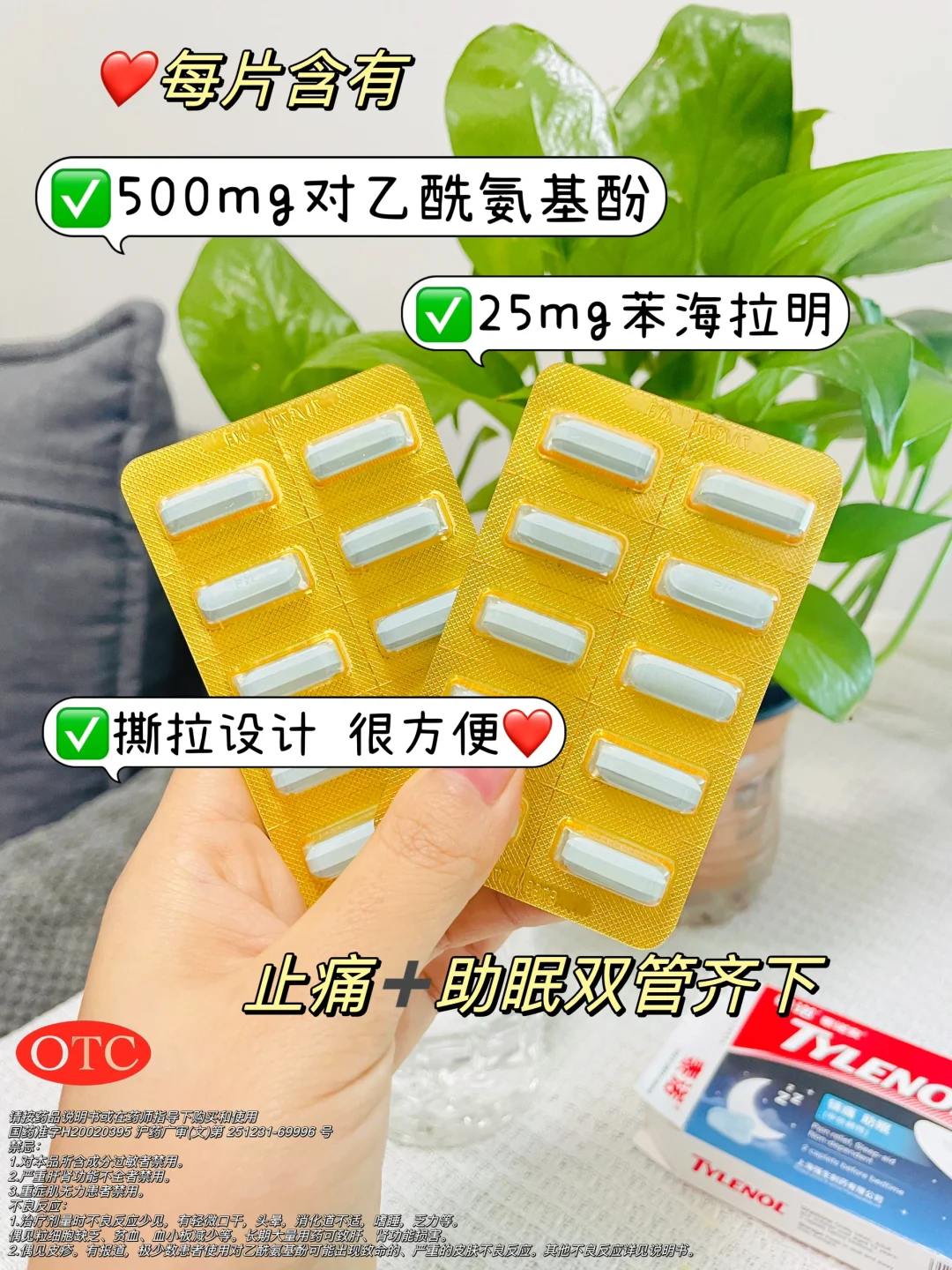 而且,它还复配了助眠的成分❣苯海拉明,让你在止痛的同时,也能拥有一个舒适的睡眠。