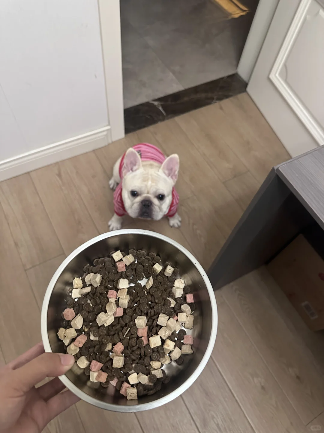 奶糖吃战斗已经好几年了,特别喜欢他们家这个鸭肉火龙果款,颜值很高,而且吃这款几乎没泪痕,很适合法斗和小白狗