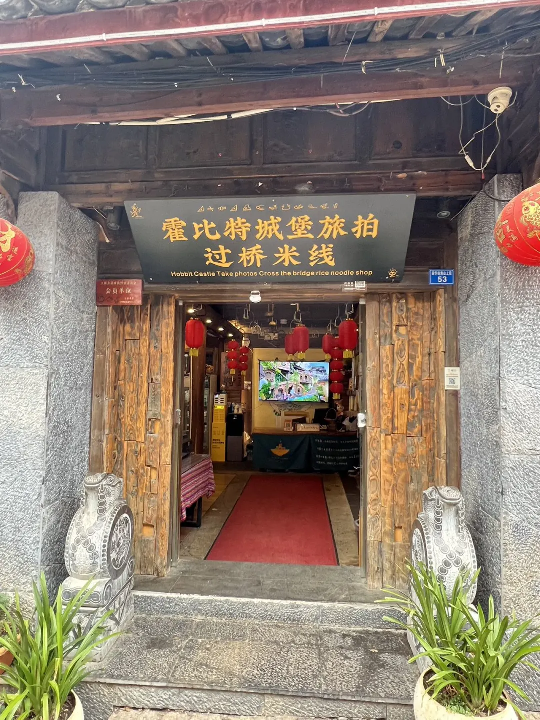在古城里发现一家环境很棒的米线 上楼后可以俯瞰古城的美景 整体装修很有特点 有很多人拍照 在霍比特城古城吃米线分分钟出大片 米线口感很正宗 吃起来很有仪式感 在热汤中翻滚熟后 可以陆续下各种辅料 汤鲜味美 真的是赞不绝口 炒饭 小串他家也是特色 来到古城的朋友很值得一试📣📣 📍:霍比特城堡旅拍过桥米线