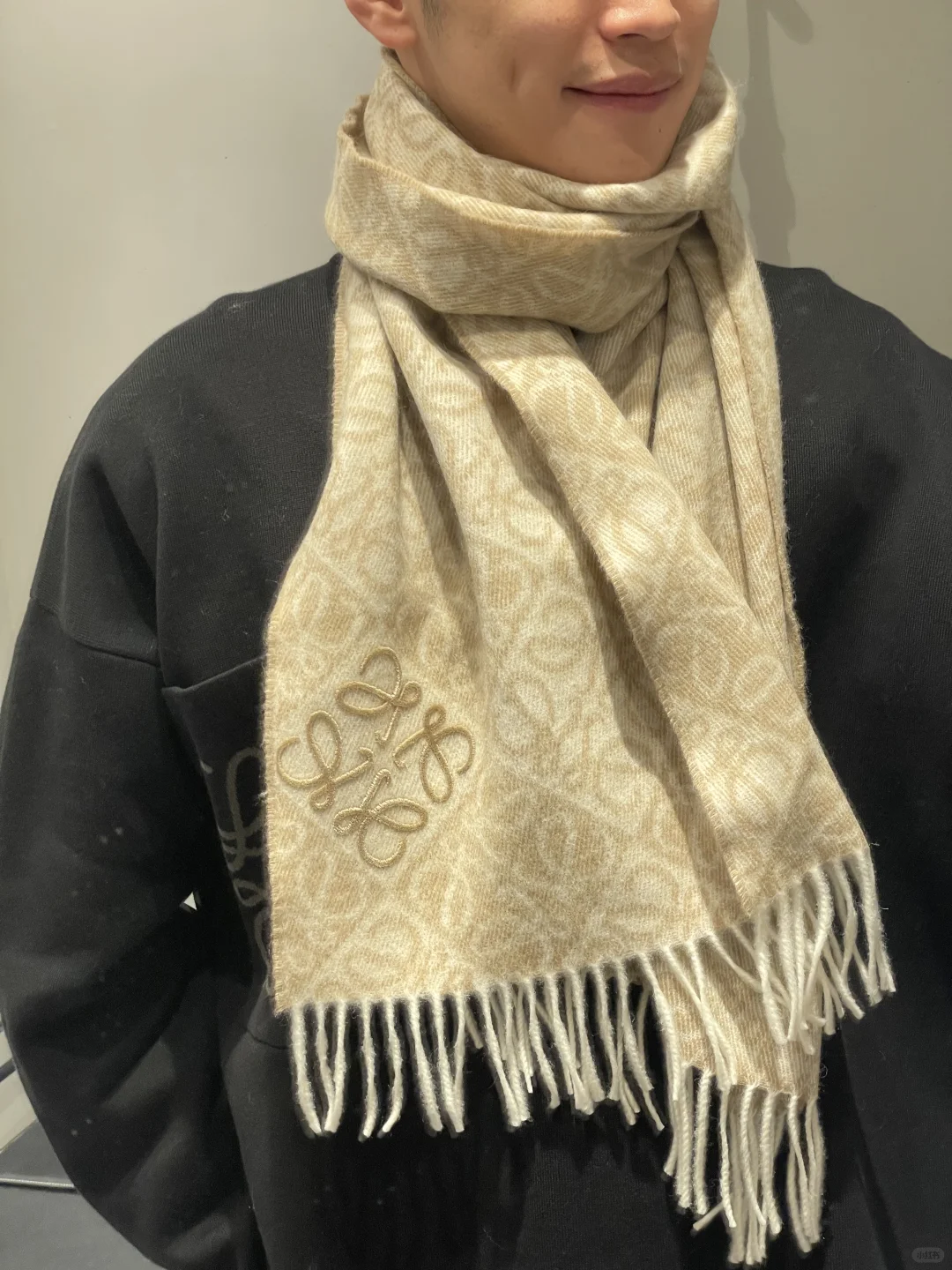 时髦秋冬利器 又到了戴围巾的季节[派对R]LOEWE罗意威会出手[暗中观察R] 羊毛围巾意外肤感舒适。搭配简单的毛衣和风衣。 清冷感这不就来了吗[doge]
