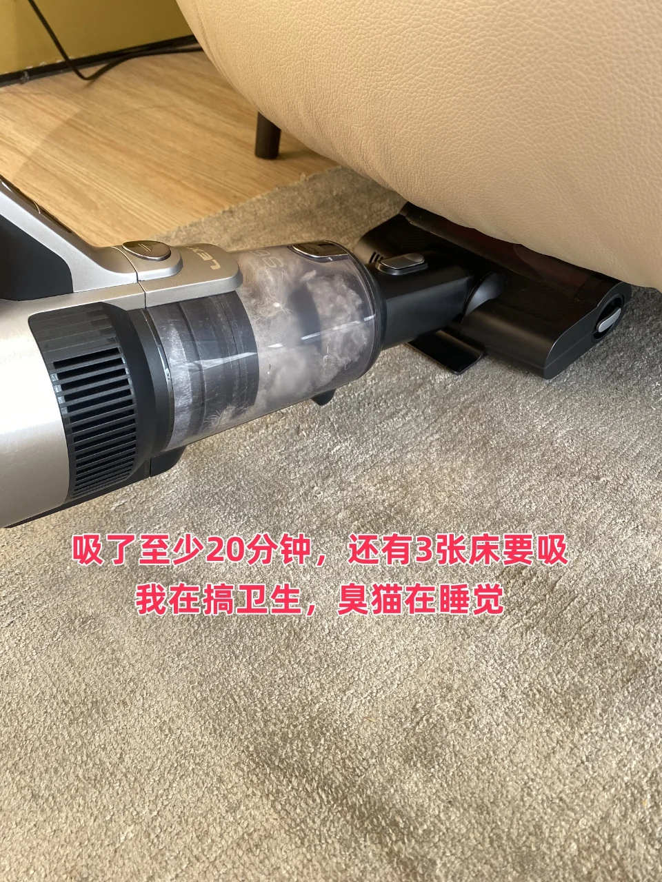 地毯和床上的毛就用地毯模式,一次吸两斤,你别不信,不信你回家试试,真给我难受死了,还有黑色的灰尘,不知道哪里来的,就是吸出来了。