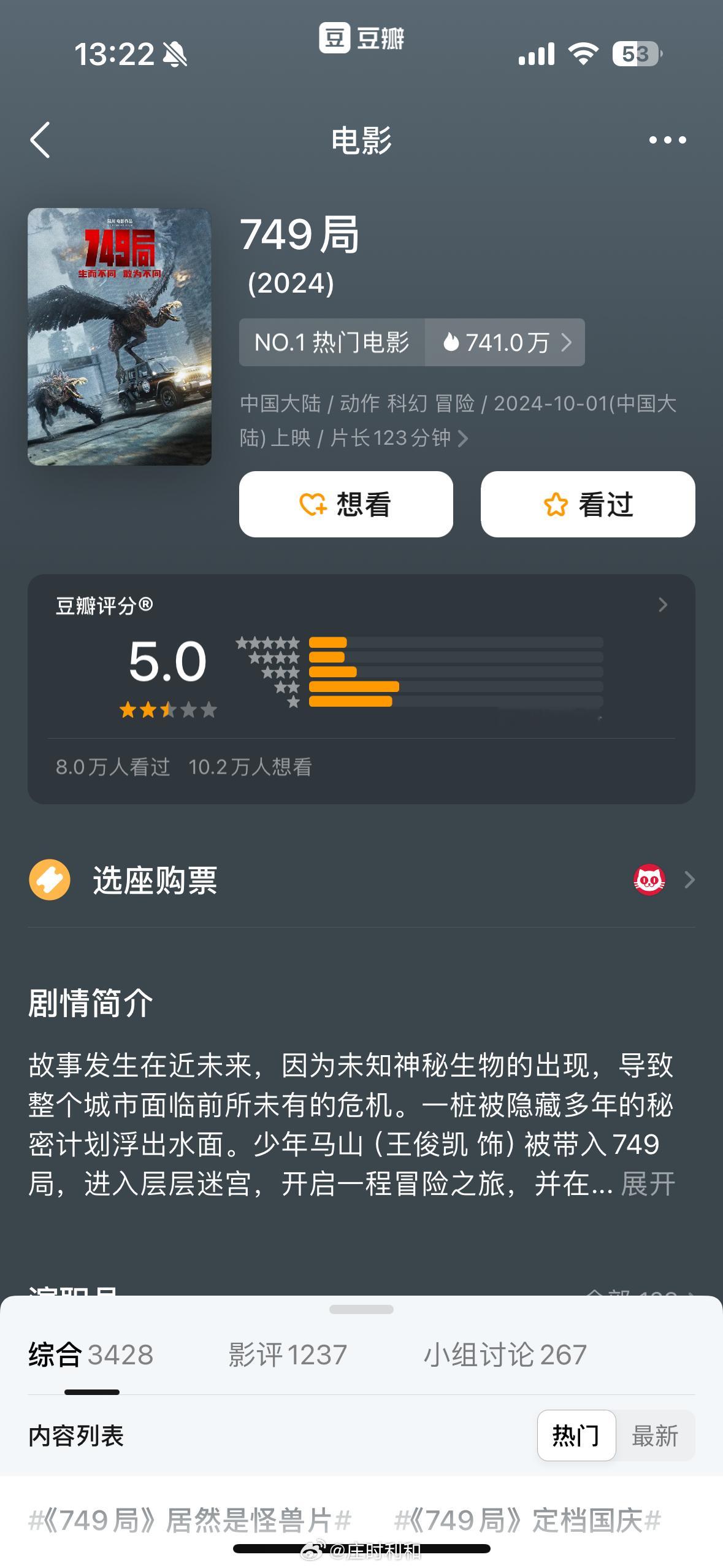 我今年看过最好看的院线,分别是姥姥的外孙( 豆瓣评分8.9)和 里斯本丸沉没( 豆瓣评分9.3)。这两天很火的749局,我没时间也没兴趣去看。