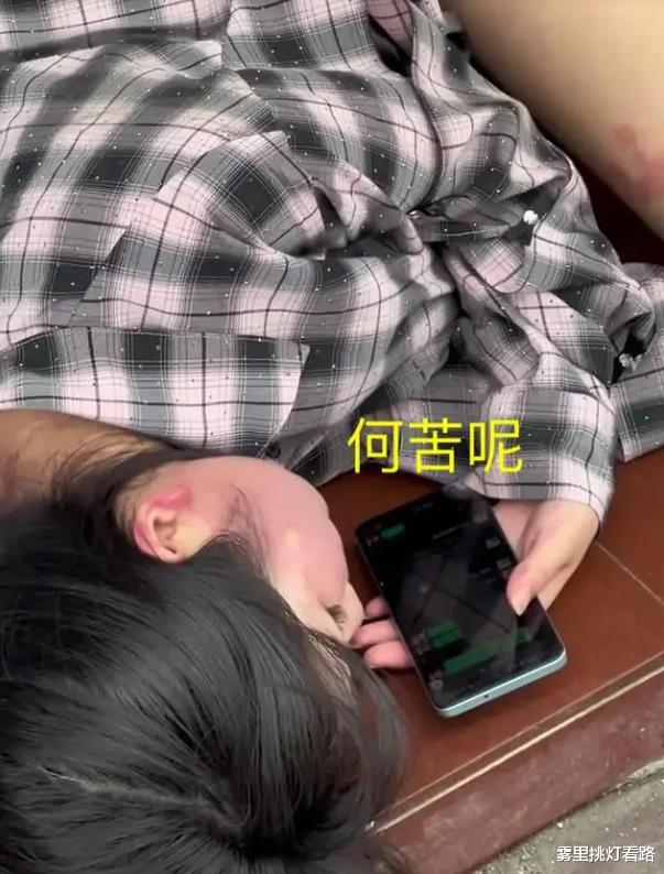 看着这位女子,人们不禁感到心疼。她身穿短裙,腿上的红色印记清晰可见,仿佛是失恋留给她的烙印。女子手里还握着手机,她在清醒时似乎正在和前男友诉说着什么,这一幕让人不禁感到心酸。
