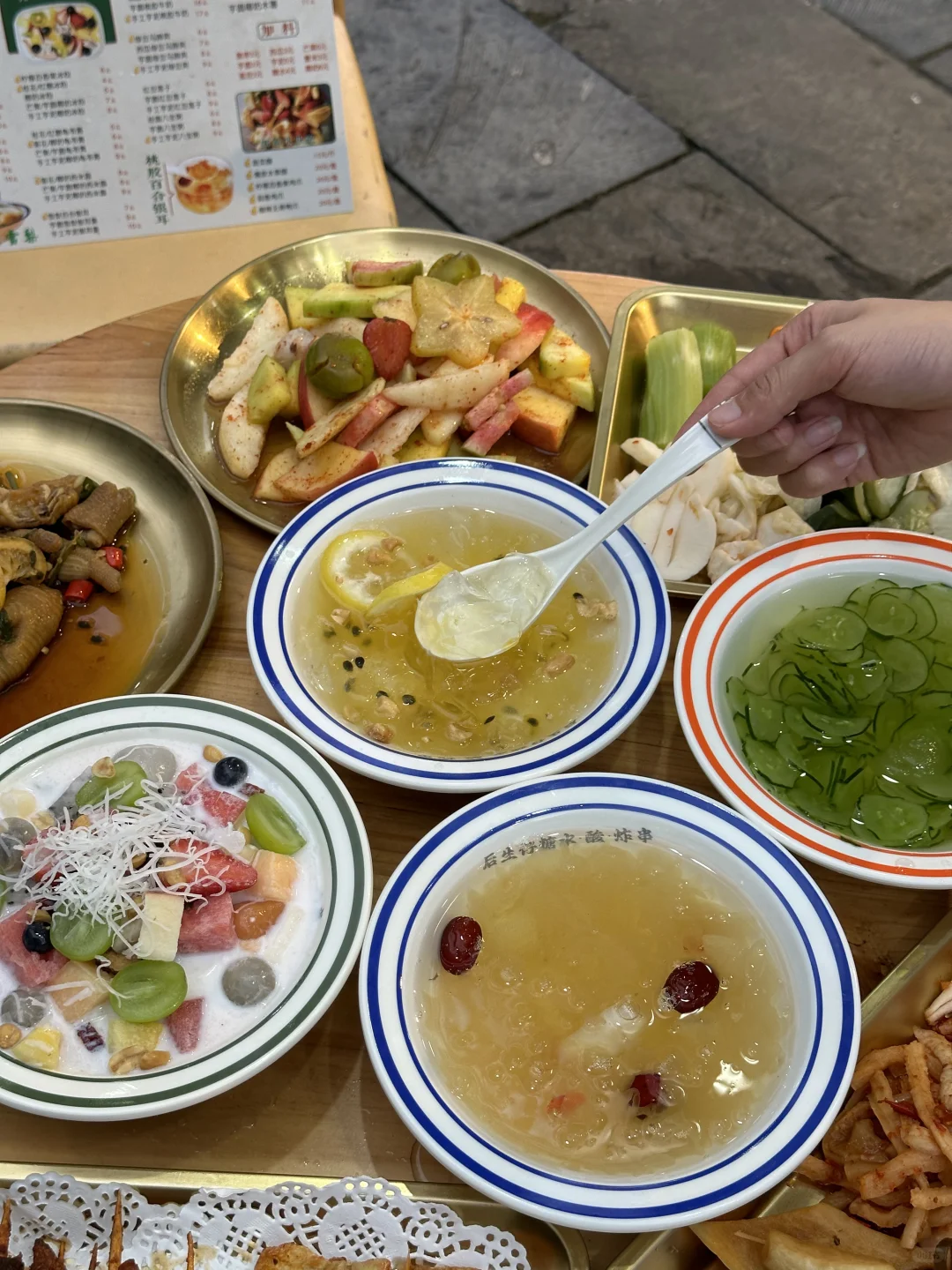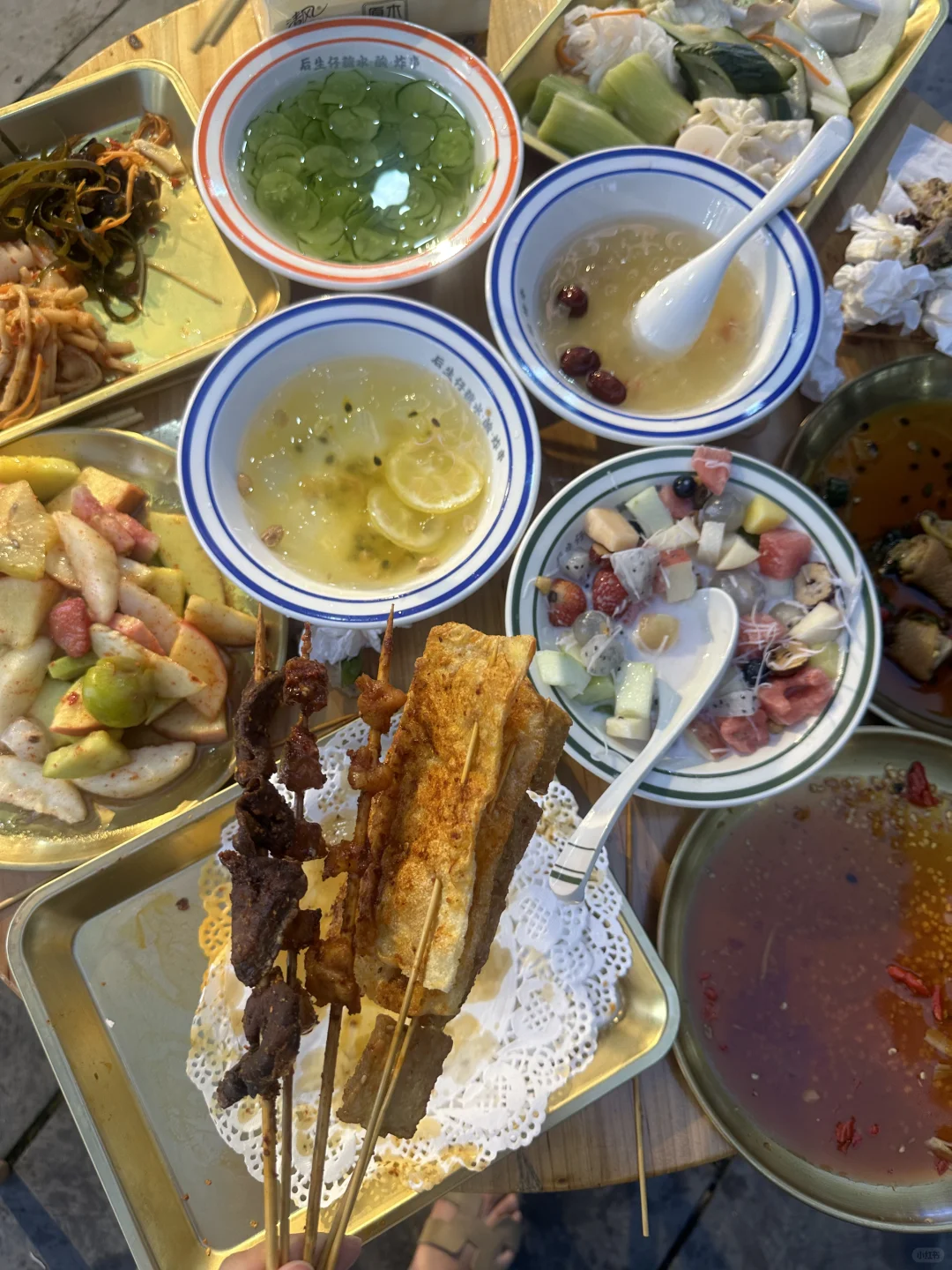夏天来了,糖水简直就是我的续命水 没欺我没欺我,这家糖水真的好喝~ 从去年喝到今年,但凡路过必须要来两碗 糖水酸嘢炸串的品类真的巨多!! 百香果柠檬凉粉和黄瓜糖水真的太解腻了 一边吃炸串一边喝糖水真的别提多开心了 赶紧