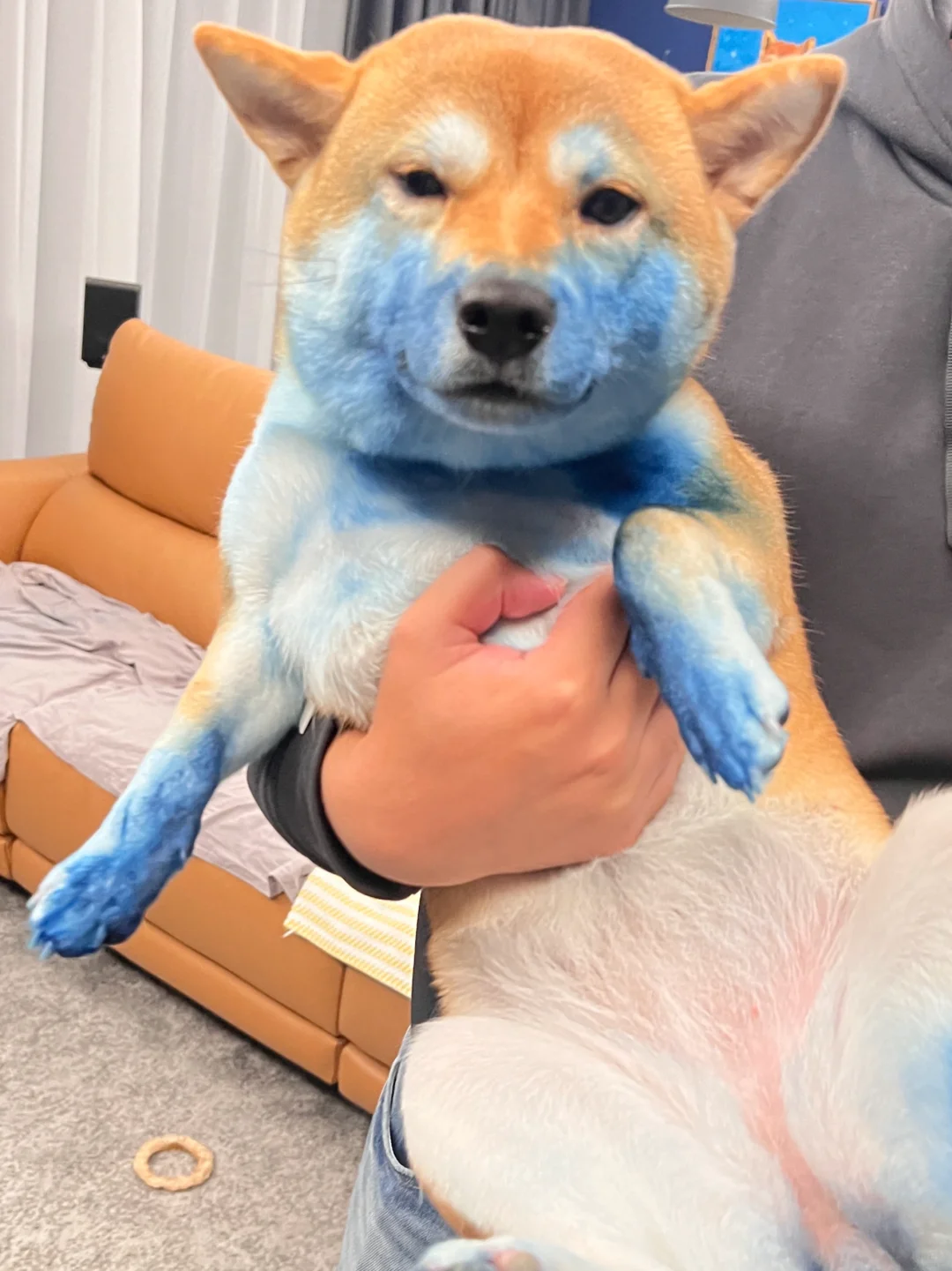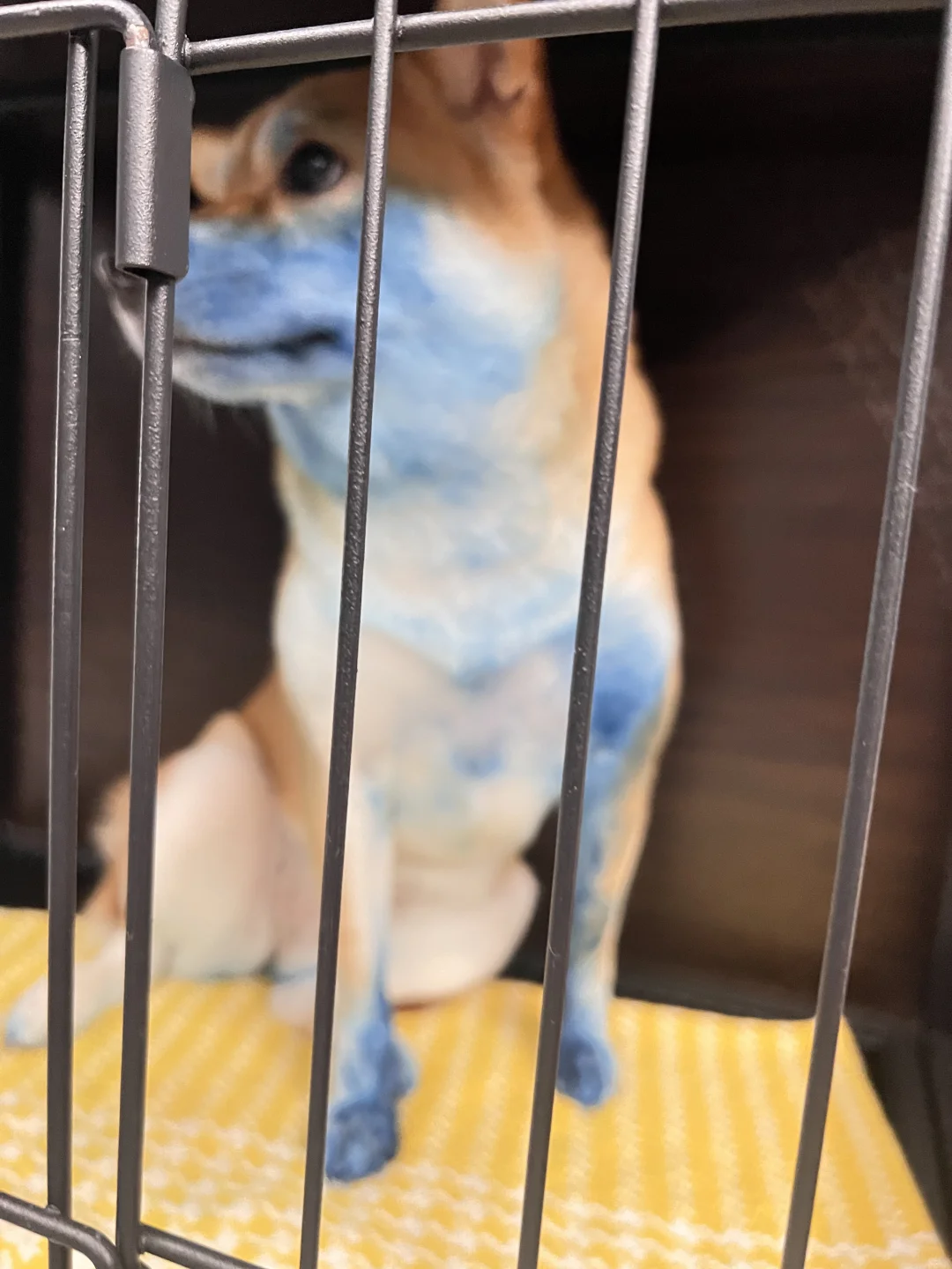 把我的染料全咬坏了 然后地毯 沙发 狗窝 自己的嘴 脚 🐔 全都染成了蓝色