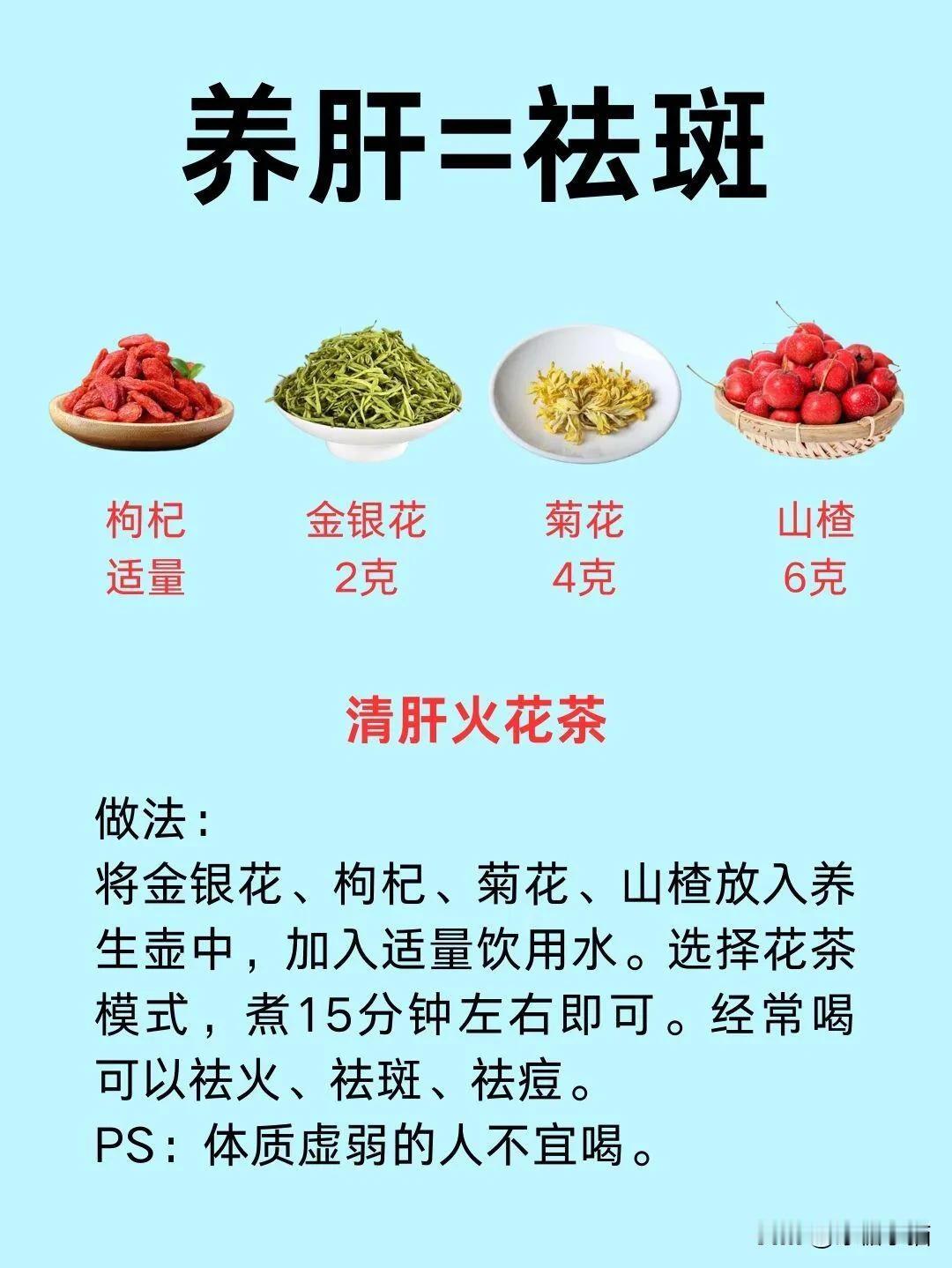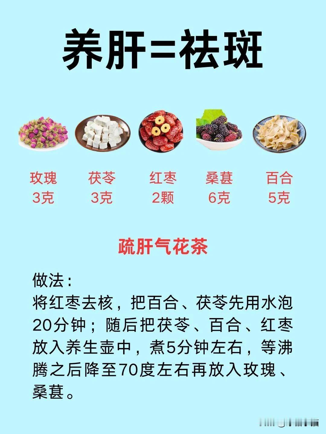 爱美的姐妹们,这三款内调护肝花茶请收下: 1、养肝血(枸杞+红枣+玫瑰+桂圆) 2、清肝火(枸杞+金银花+菊花+山楂) 3、疏肝气(玫瑰+茯苓+红枣+桑葚+百合) 本篇内容仅供参考,个人分享,不涉及科学,如有不适线下及时就医~ #养内调# #先说内调# #黄褐斑好好养# #淡斑喝什么中药# #皮肤内调外养# #内调日记# #内调是支撑# #内调好气色# #养生是内调# #女内调#