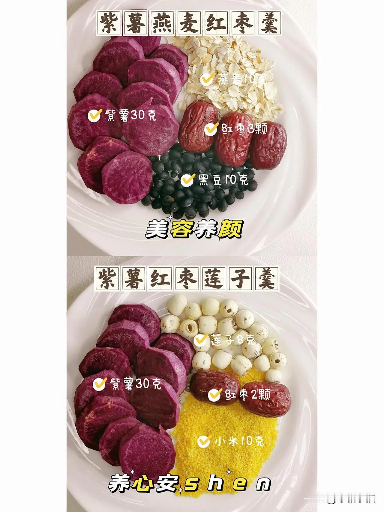 紫薯含丰富膳食纤维,促进肠道蠕动,软化肠胃食物,适合减fei的当主食吃 同时富含花青素,抗氧化,清除自由基,抗衰老 可以增强免疫力 今天小猫给大家整合了九款紫薯醉·佳CP,可收藏日后安排一波~ 做法: 食材洗净放入破壁机中,加600毫升清水,选择破壁机豆浆模式打成豆浆,微微放凉后可加适量冰糖或者蜂蜜调制到自己喜欢的甜度即可~ #早餐粥代餐# #无蔗糖杂粮粥# #五白谷物膳食# #膳食纤维豆浆# #杂粮代餐粥# #五色养生清肠餐# #抗炎早餐天天见# #0蔗糖杂粮粥# #吃好抗炎早餐# #营养即饮早餐#