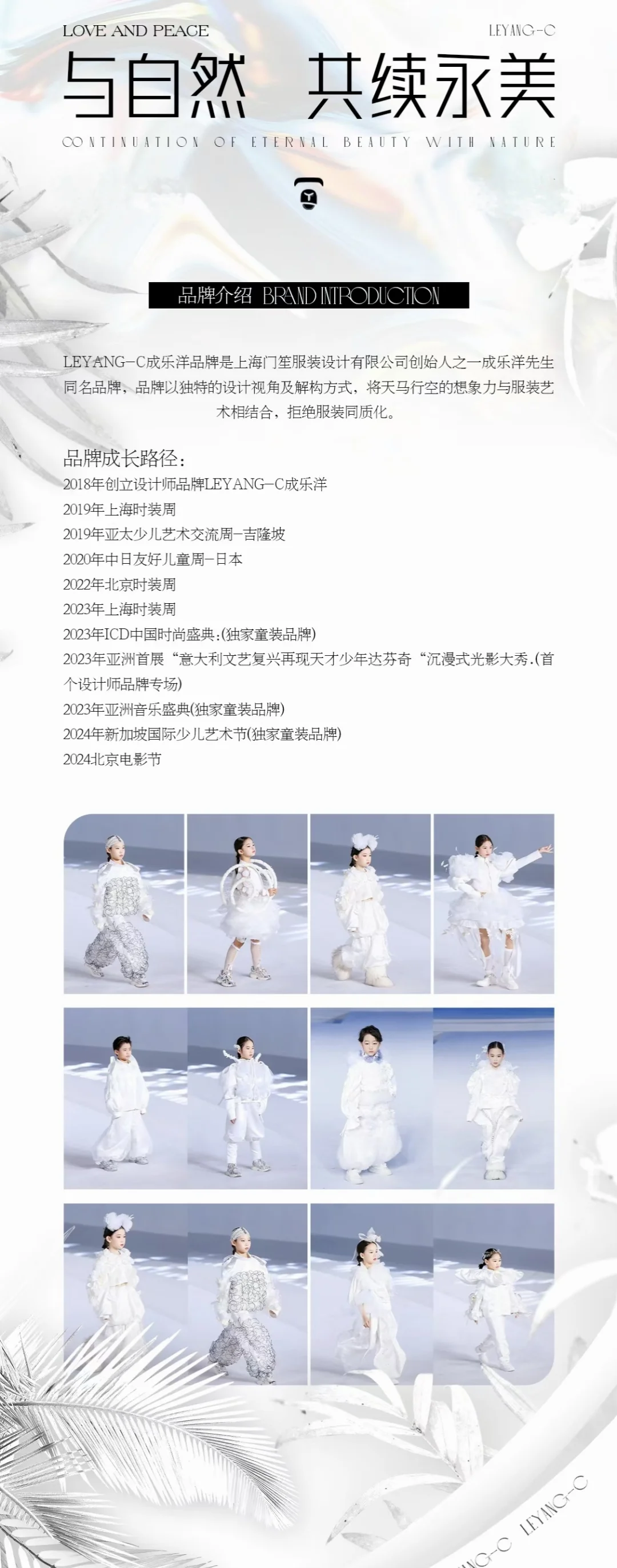 SS2025上海时装周 成乐洋LEYANG-C高定秀场 爱与和平·与自然永续共美 2024.10.13 17:30PM 上海·静安·800秀场 童模招募倒计时3天