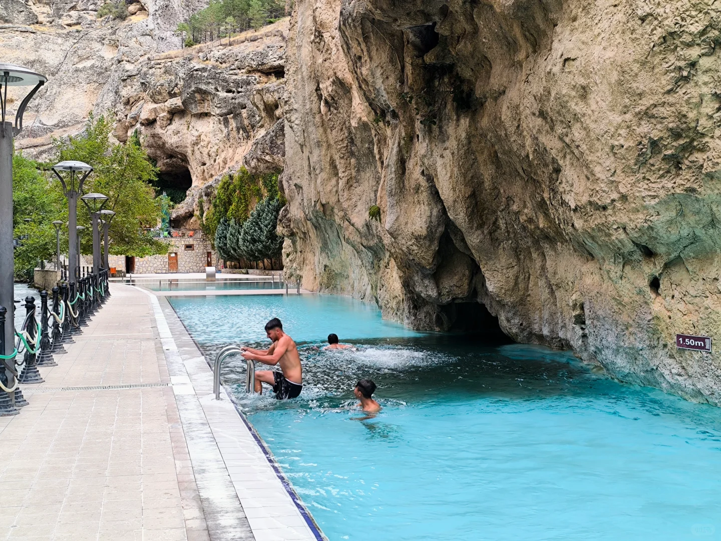 作为这一站的主线任务,首先就是要在这片峡谷里游个泳。当然,这可不是什么未知水域的野泳,而是正儿八经的游泳池,也是当地著名景点——Kudret Havuzu(力量之池)【图1-6】。