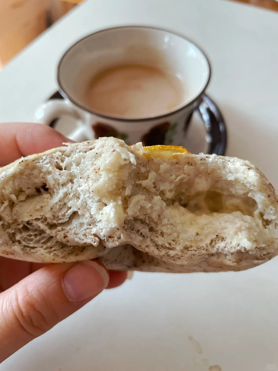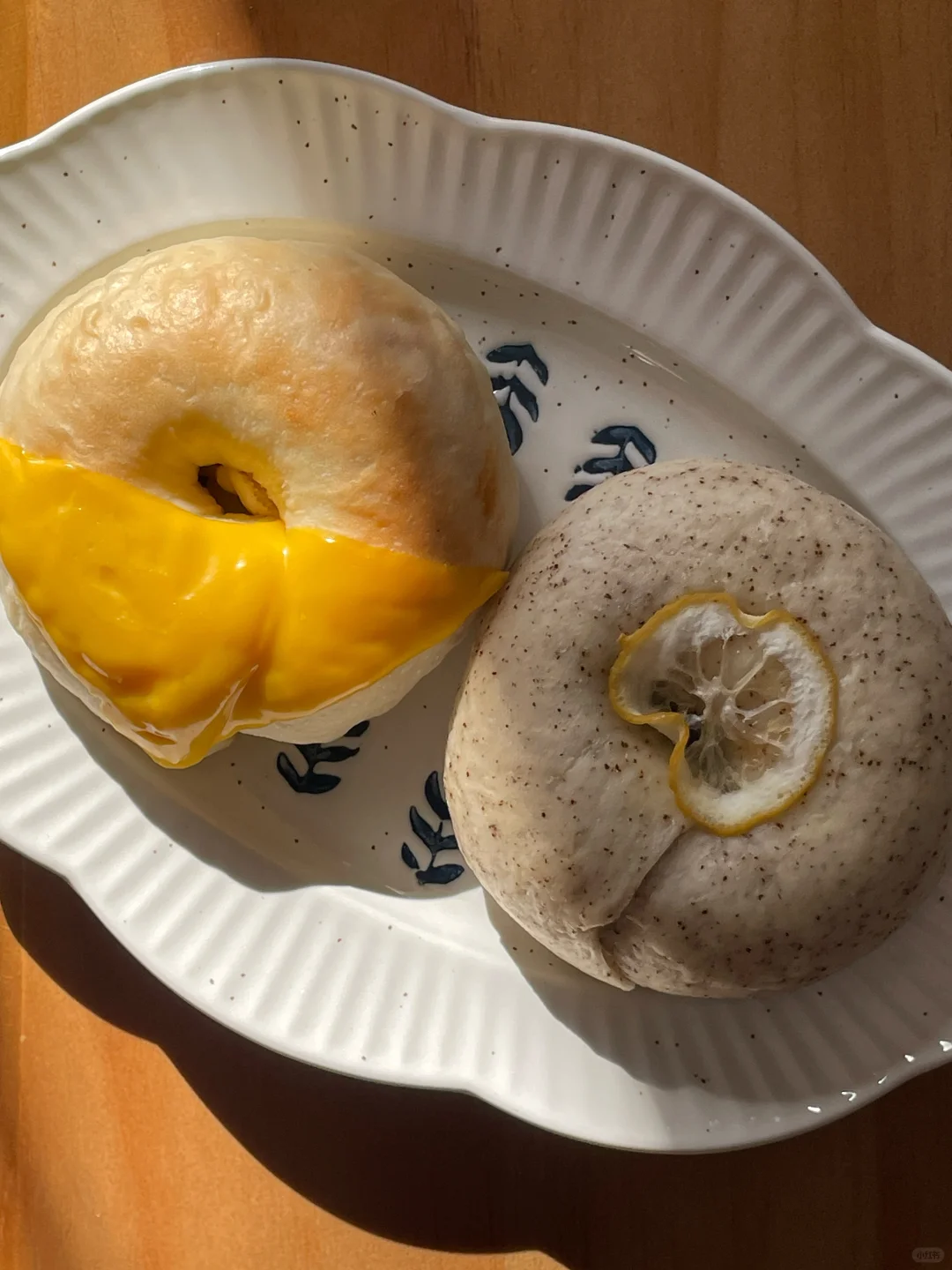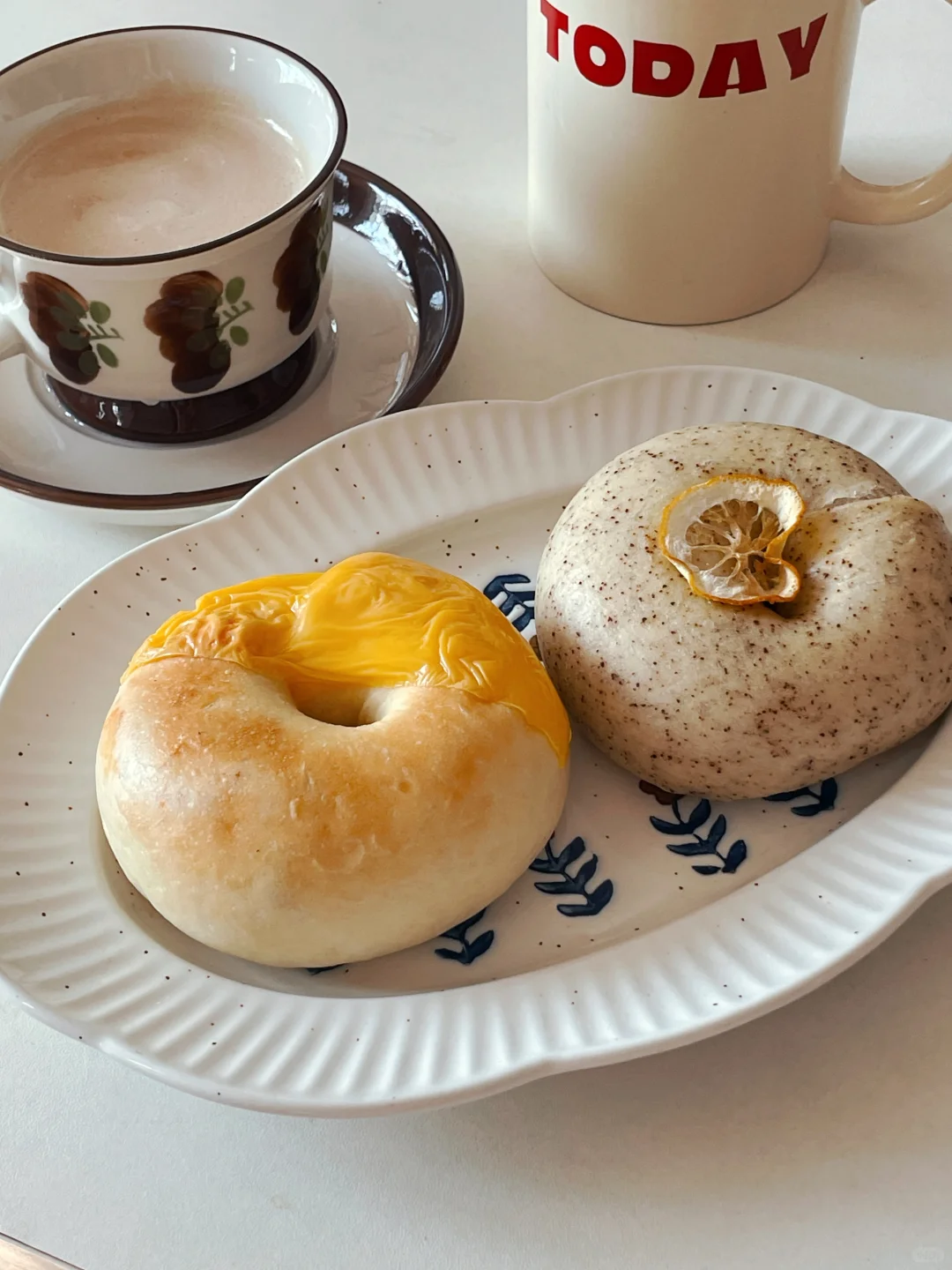 咸蛋黄肉松芝士贝果🥯、伯爵柠檬🍋红茶贝果、恰巴塔,配上一杯咖啡或者牛奶🥛,美美开启一天!