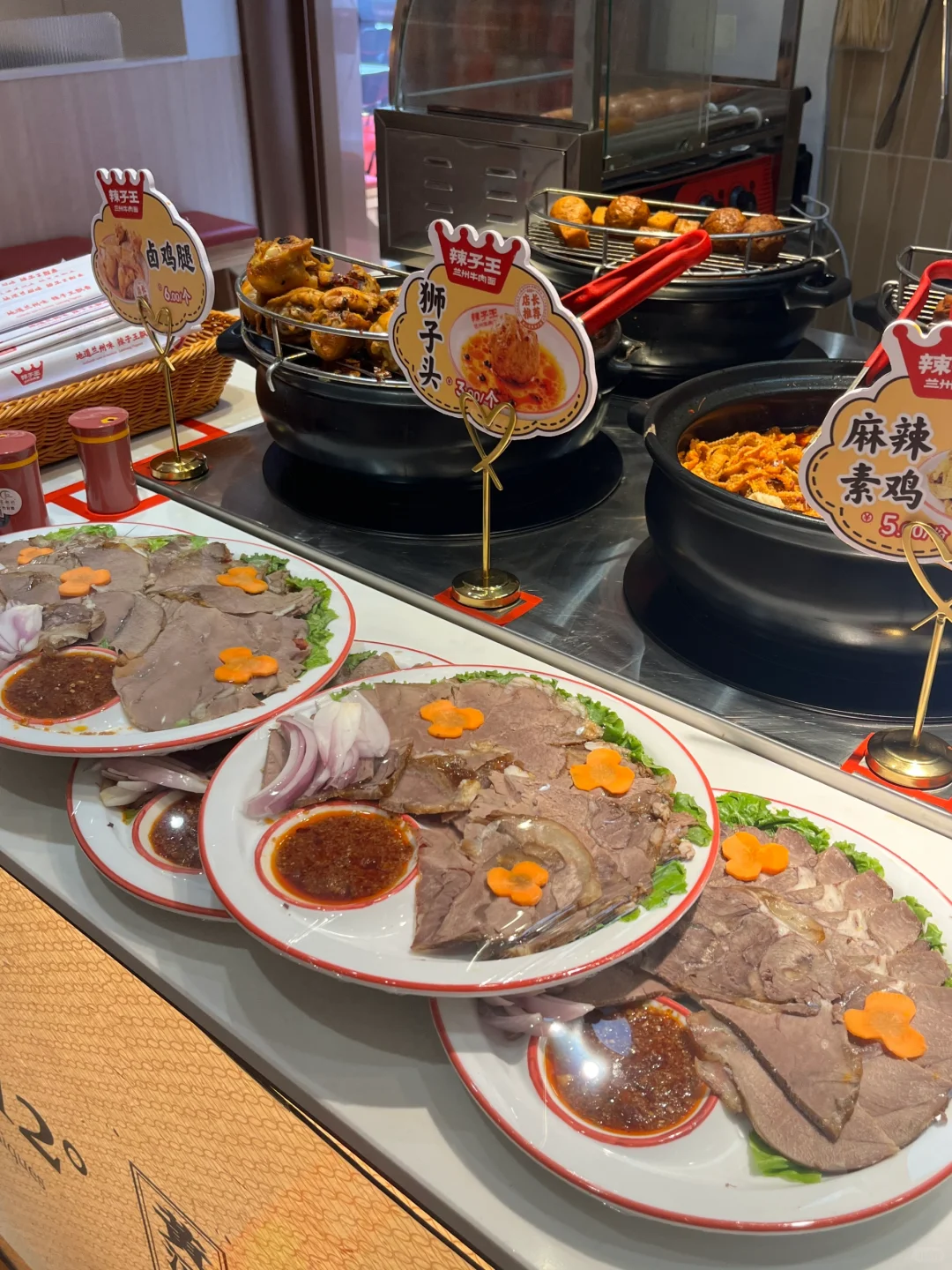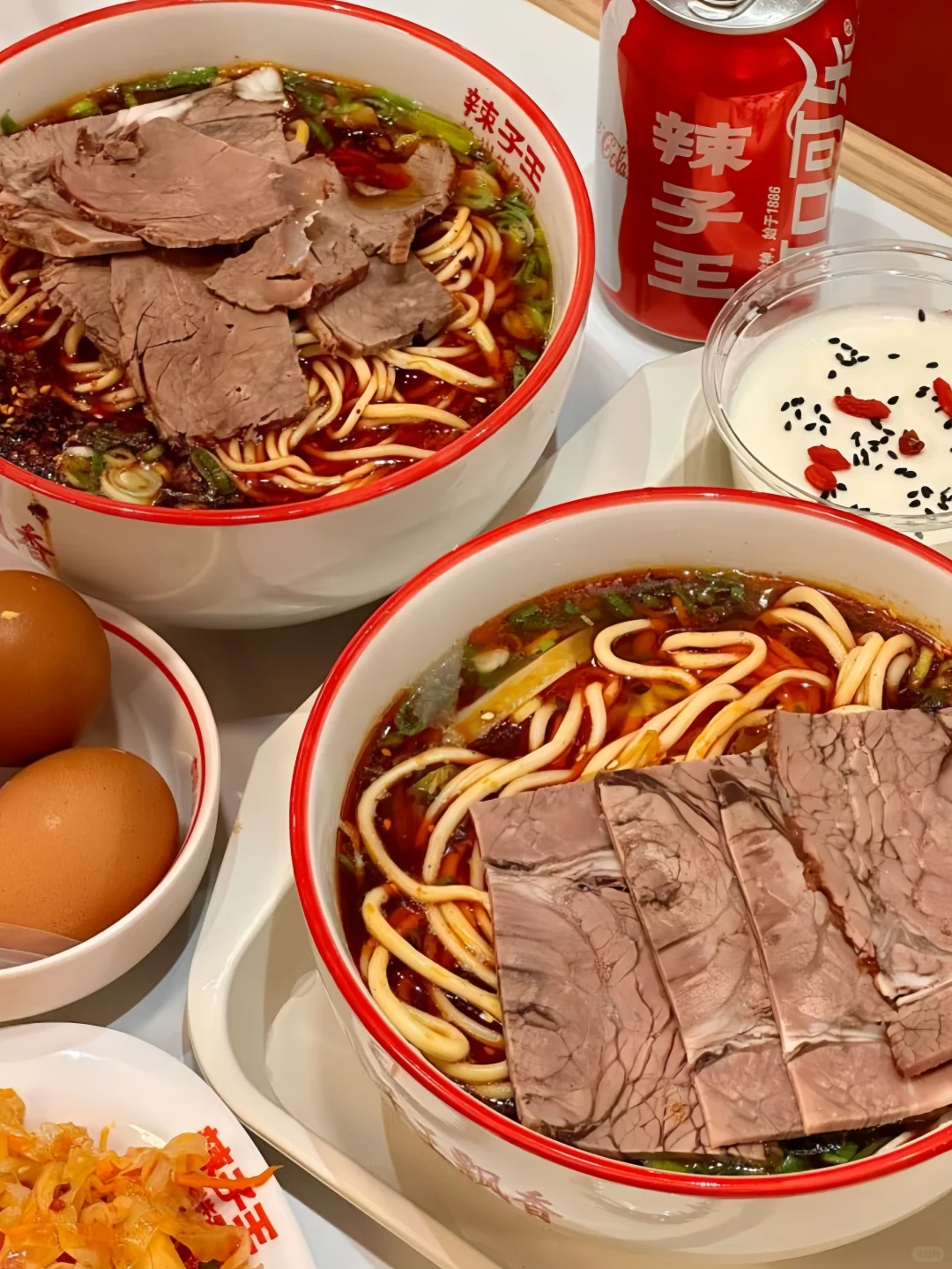 🌈首先就是被店面吸引,让人眼前一亮。店面很大挺宽敞。不光是牛肉面,还配置了兰州人都会喝的甜胚子奶茶。小菜的种类特别多,都是现拌现盛的。面量大很实惠,我吃完顶饱了[吧唧R]。他的辣椒油有两种,特辣和香辣型。除了传统的牛肉面,还有酸菜牛肉面,加工炒面条,凉面等等。还有!!牛肉面标配的小蝶牛肉也是大片且也很入味。还有小吃,烤肠,豆干,鱼豆腐等。没端面前,我先把所有吃的全看了一遍[派对R]色泽就很让人开胃,满足了爱吃面的友友的各种选择。当然特色系列也少不了,比如烤包子,牛肉饼,八宝茶,牛奶鸡蛋醪糟,玉米饼。