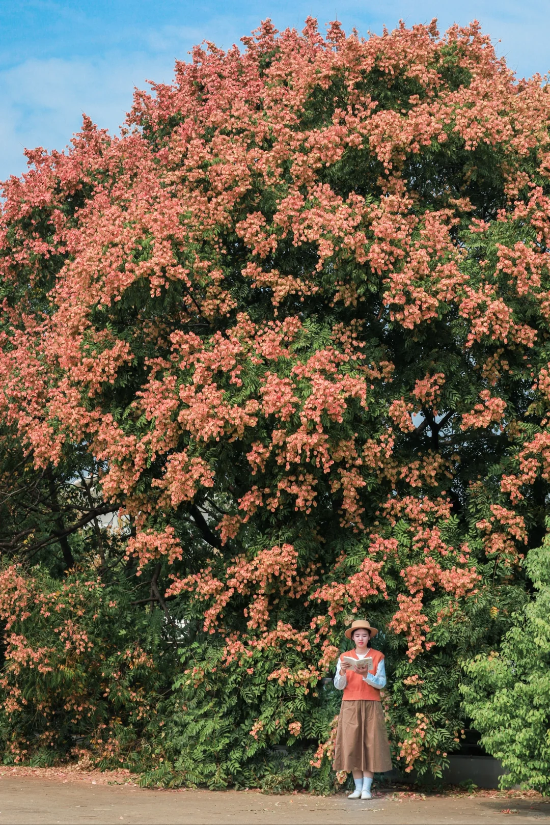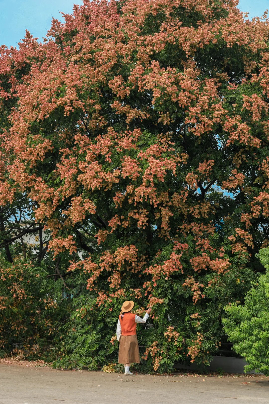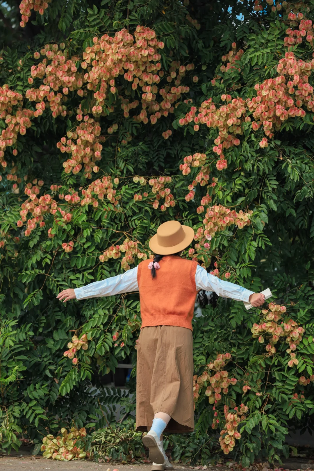 以前从没发觉,武汉大街小巷有这么多栾树 从金黄色的栾花蜕变成粉色的红果,成片的栾树形成了秋天浪漫的色彩 史铁生在《 我与地坛》中这样写栾花:大树下,破碎的阳光星星点点,风把遍地的小灯笼吹的滚动,仿佛暗垭地响着无数的小铃铛 这里的栾树好适合拍人像,栾树就是一场盛大的春天 📍琴台大剧院二楼平台(阅湖书店) 🚄地铁6号线琴台站C口直达