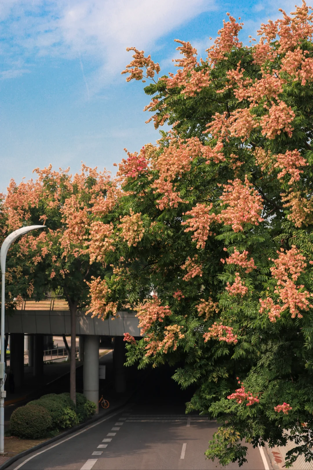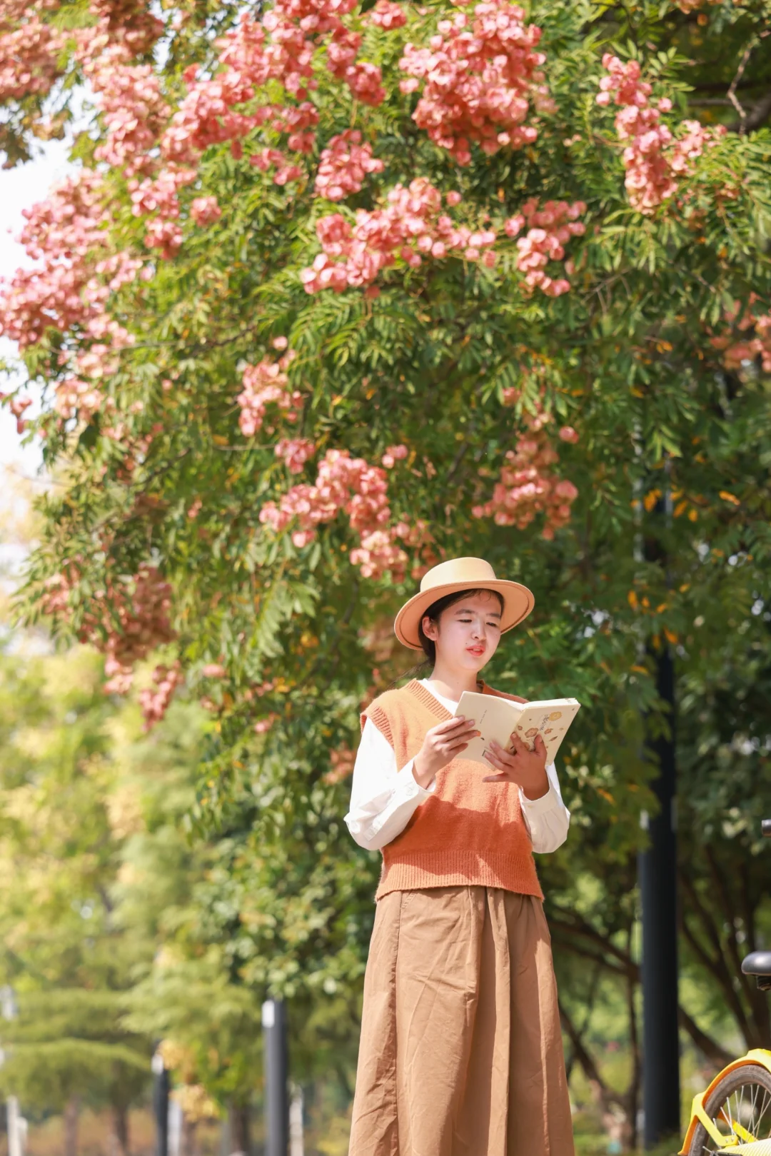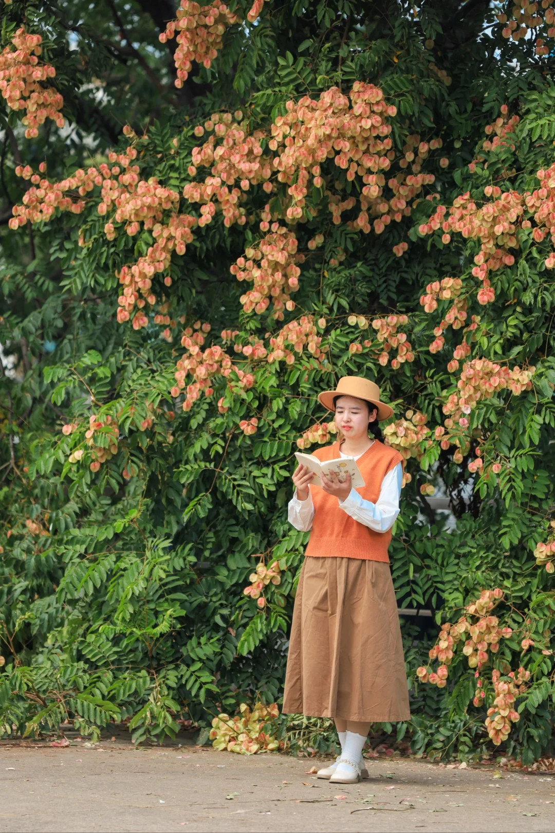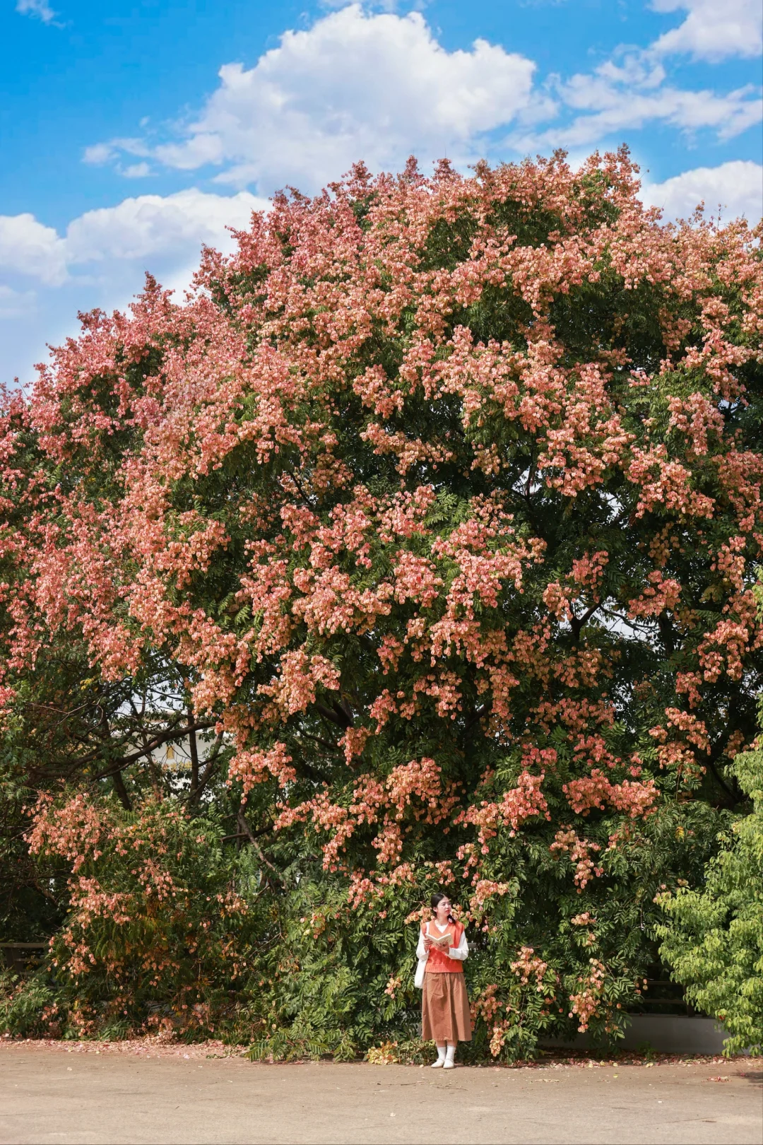 以前从没发觉,武汉大街小巷有这么多栾树 从金黄色的栾花蜕变成粉色的红果,成片的栾树形成了秋天浪漫的色彩 史铁生在《 我与地坛》中这样写栾花:大树下,破碎的阳光星星点点,风把遍地的小灯笼吹的滚动,仿佛暗垭地响着无数的小铃铛 这里的栾树好适合拍人像,栾树就是一场盛大的春天 📍琴台大剧院二楼平台(阅湖书店) 🚄地铁6号线琴台站C口直达