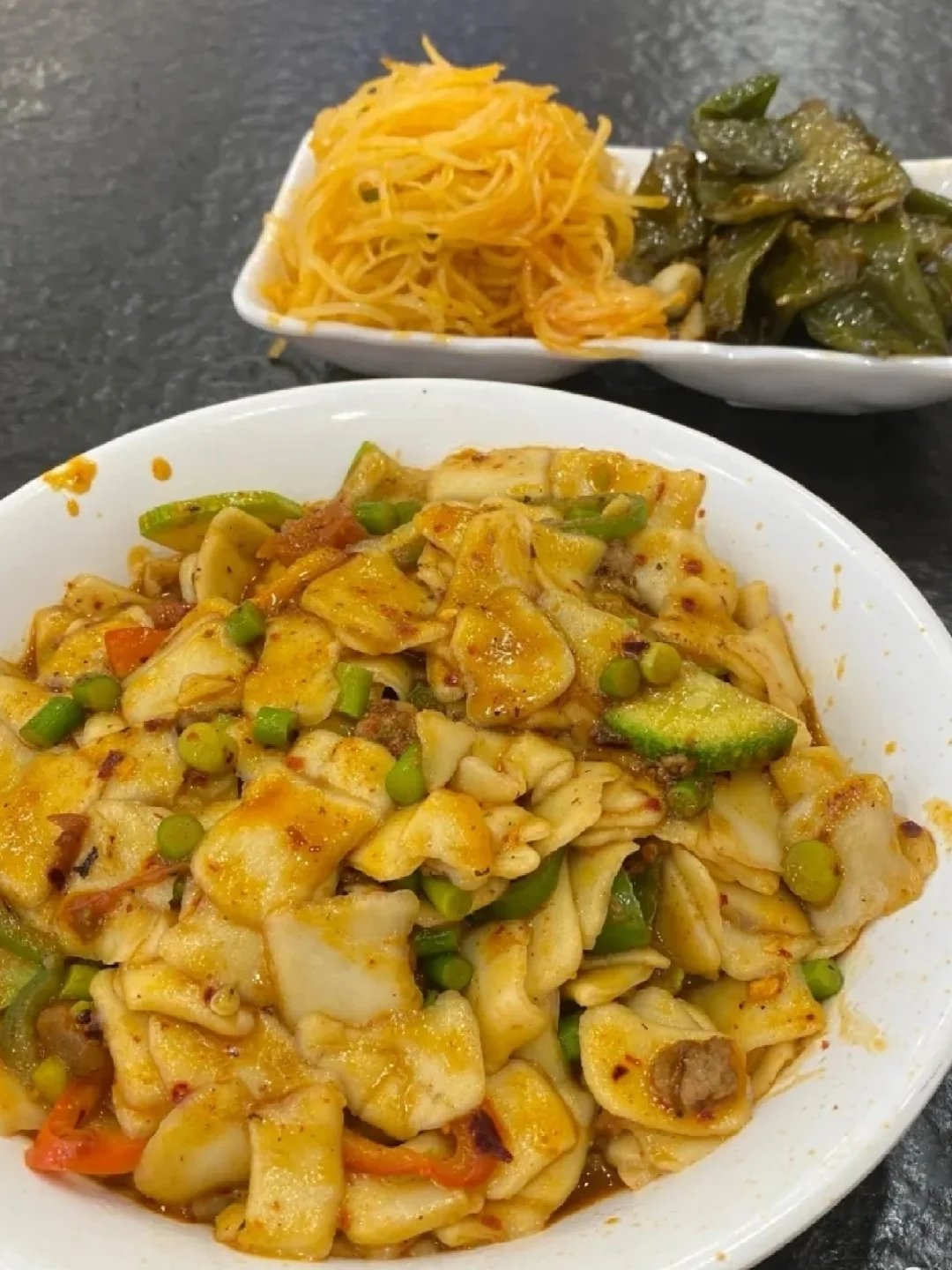 本地特色面片,炒面片很嫩,面片是薄薄的,很入味,味道很正宗。
