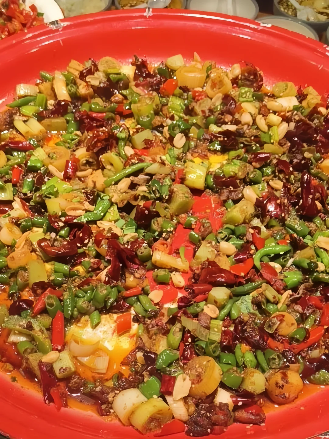 🌈秋金小炒plus ::这个真的是到店必点的菜了,分量很足,比脸还大的盘子里面有辣子鸡,花生米,肥肠,土豆,藕丁,青笋丁,用料很丰富,麻辣十足,特别过瘾,比辣子鸡丁的味道还要再上乘一点(不太能吃辣的友友慎点)