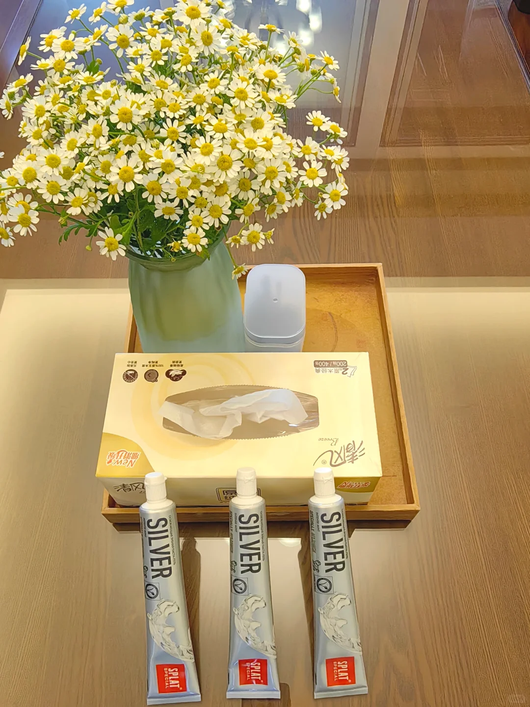 除了大件,在小物品的选择上也追求品质,不求多但求好,比如我用的牙膏,是splat这个品牌,是俄罗斯一家知名度很高的公司,这款银离子清新牙膏含量至少有90%的天然成分,真的是安全又健康。
