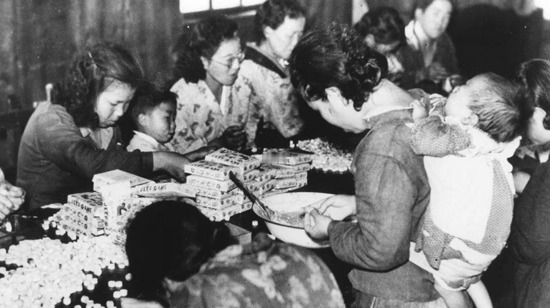 图11:战后日本,丈夫死于战场的寡妇只能带着孩子上班。