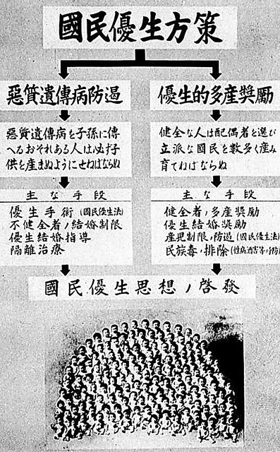 随着军国主义的人口政策愈发激进。1940年,日本政府颁布了《国民优生法》,其宗旨在第一条中明确记载: