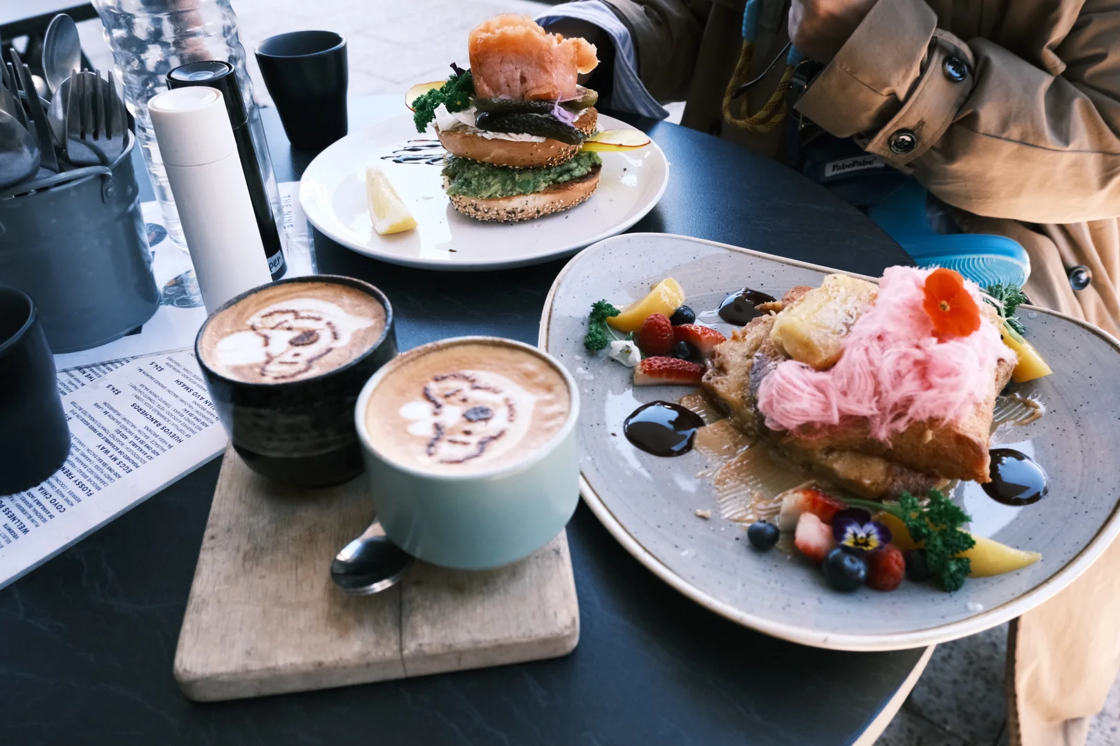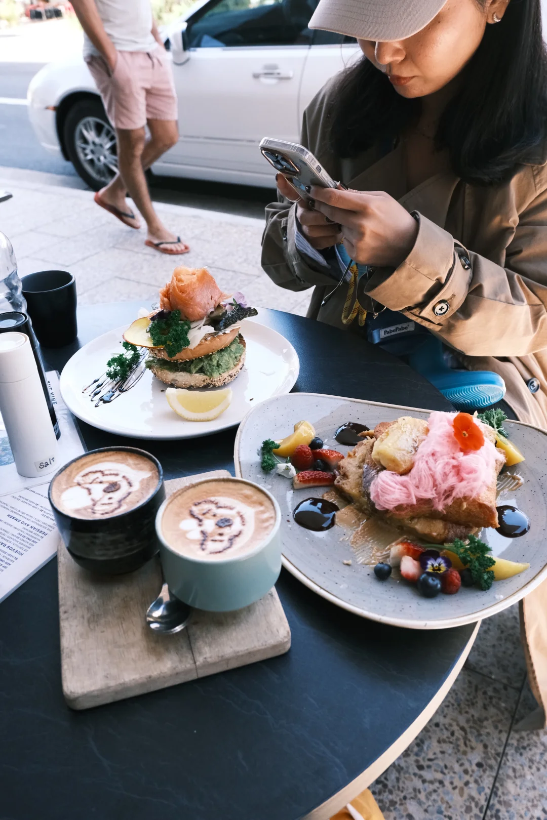 好看又好吃的一顿饭! 就在bondi海滩旁边的brunch小店 奶咖都有考拉拉花🐨 French toast和Bagel都很好吃😋 🏠the nine