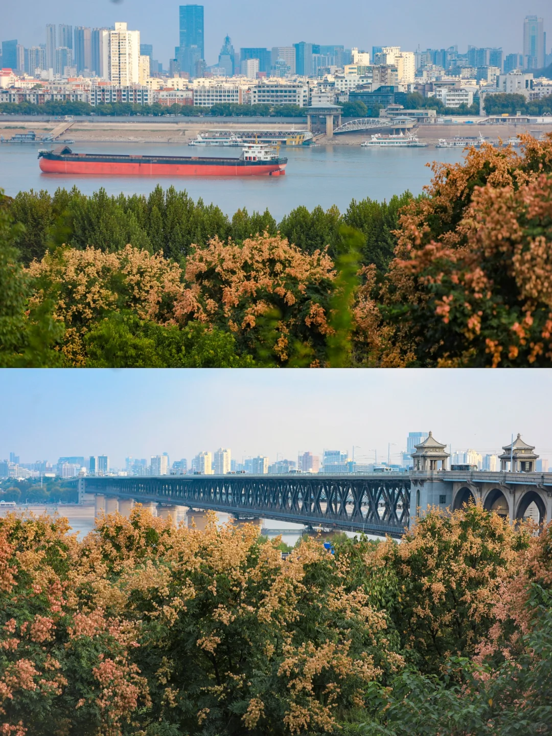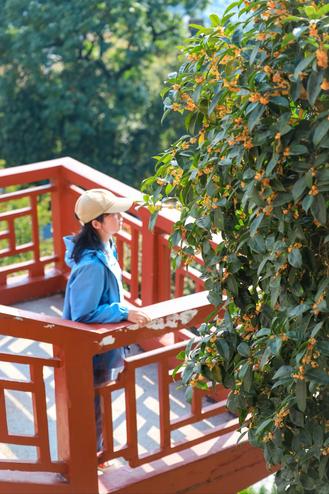 今年武汉的桂花来得有点迟 最近空气里都是桂花的香味 分享一条秋日小众徒步路线 从琴台地铁站A口出来 穿过龟北路的绿色森林 登龟山赏桂花远眺长江大桥 真的超治愈~ 📝徒步路线 龟北路—龟山北门—状元亭—桂月亭—高山仰止—蝴蝶泉—龟山电视塔—佛云亭—龟山东门 📷拍照机位 出片的机位主要在蝴蝶泉,可以拍鹦鹉洲长大桥和长江大桥,有一颗很大的金桂
