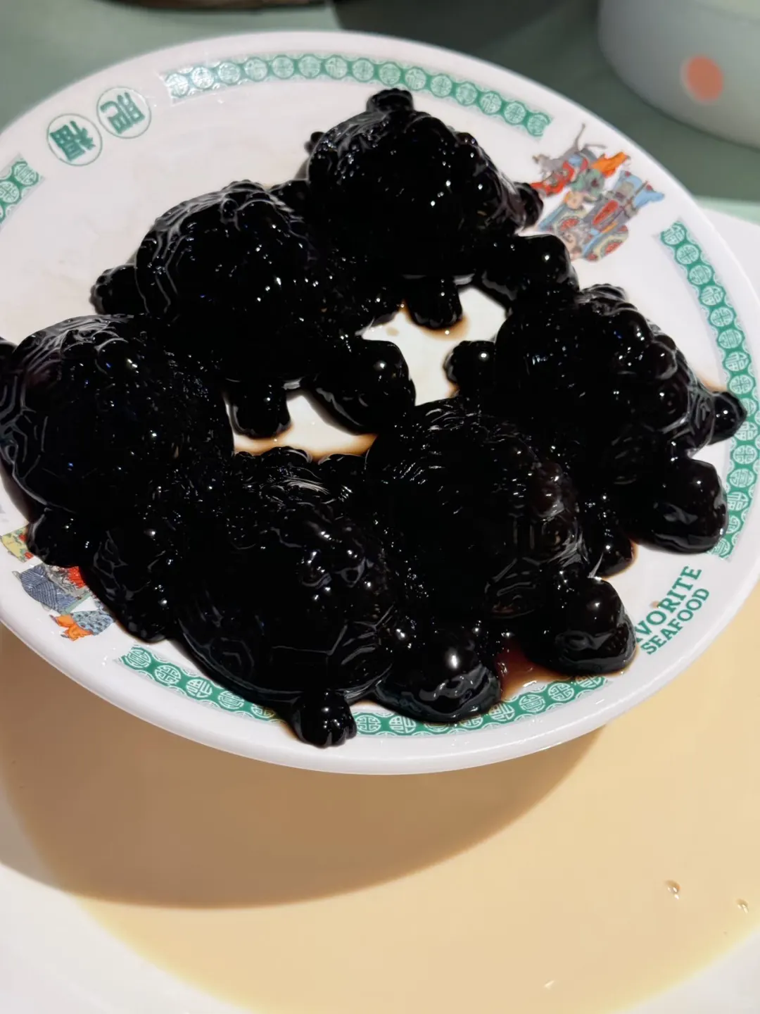 这家餐厅也太可爱了吧,一进来就看到桌子上摆的小怪兽,直接把我给吸引了,必须也要安排上一份。不仅搞怪👻而且味道也很好,香酥嘎嘣脆。 还有龟苓膏,这是造型有趣啊,一只只小乌龟下水也是太搞笑了。还有酸辣鱼翅,吃的太开心了太过瘾了,一份八两重的鱼翅在里面,泡饭吃的特别满足。