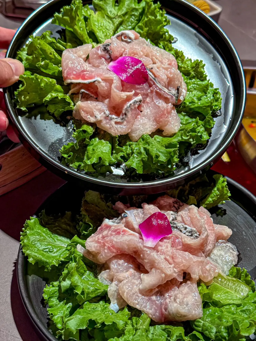 这鱼肉都是鲜鱼现杀的,鱼片吃起来细嫩鲜美简直就是入口即化,与锅底的鲜辣相得益彰,每一口都是满满幸福感🥰