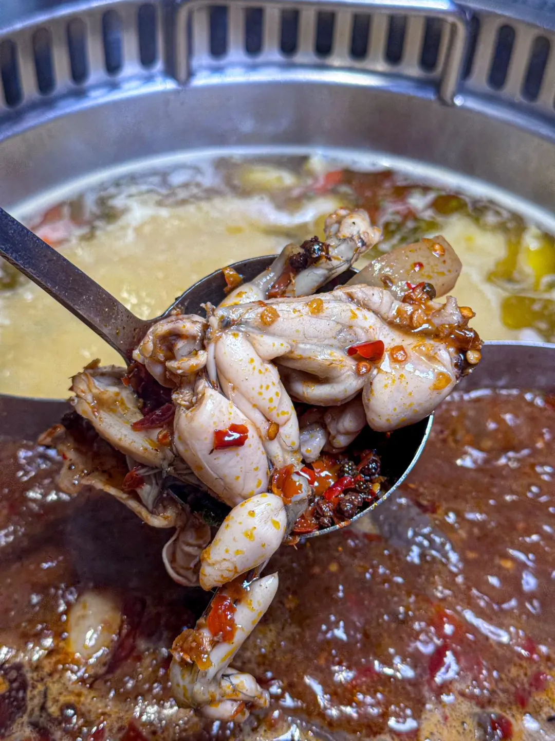 牛蛙也是鲜嫩入味,多种香味之间的完美交织,口感口味真的赢麻了,越煮越香醇,吃起来贼上头😍
